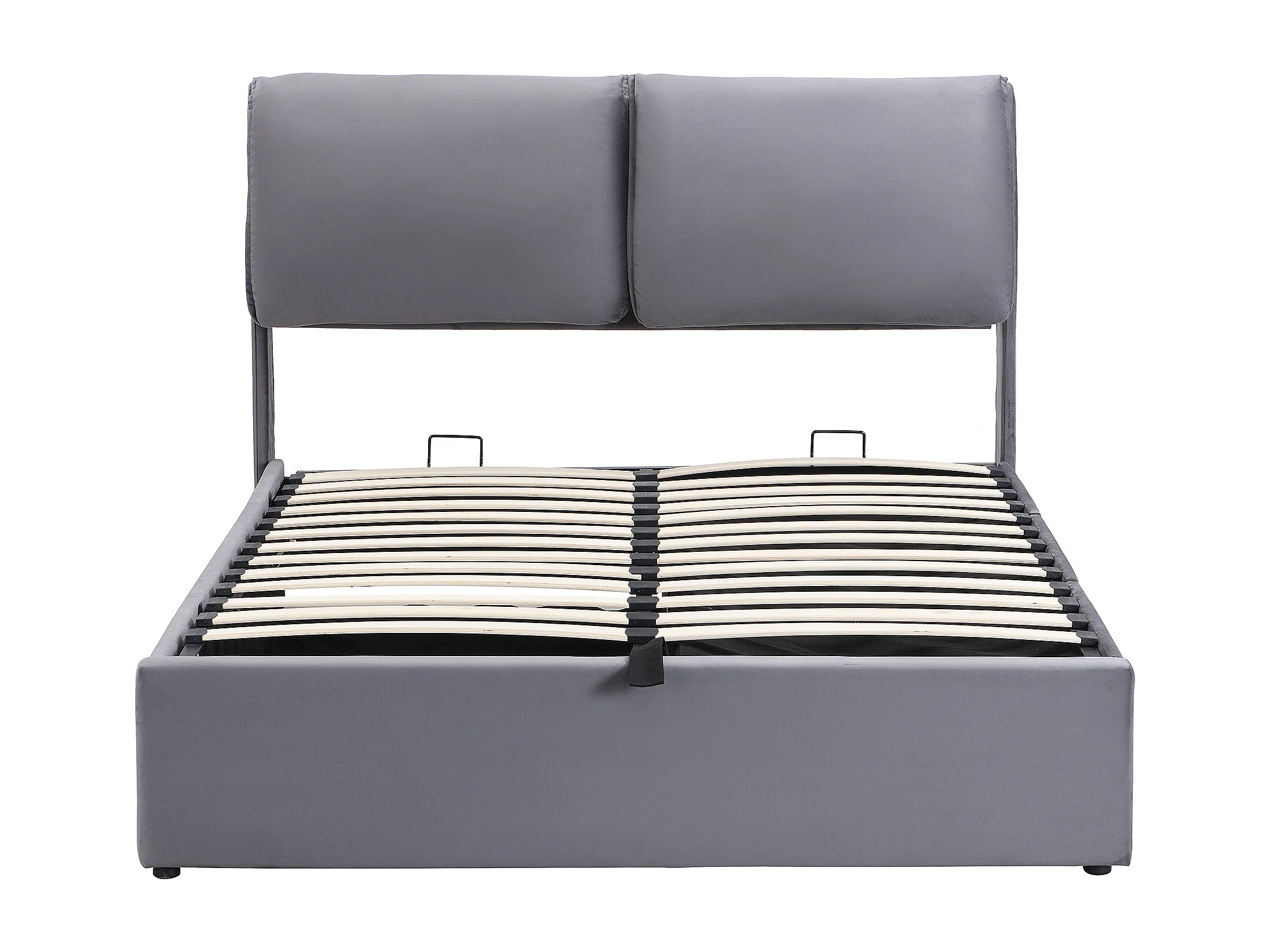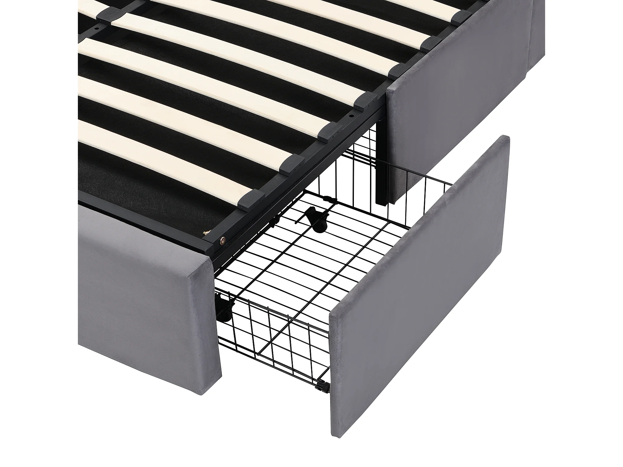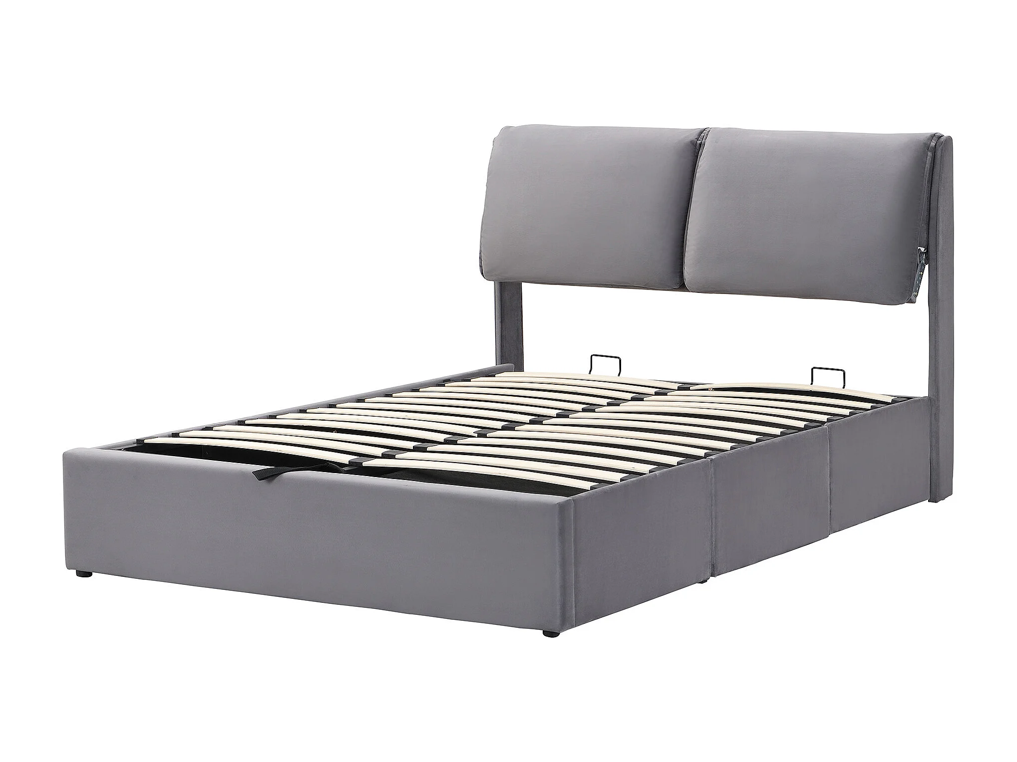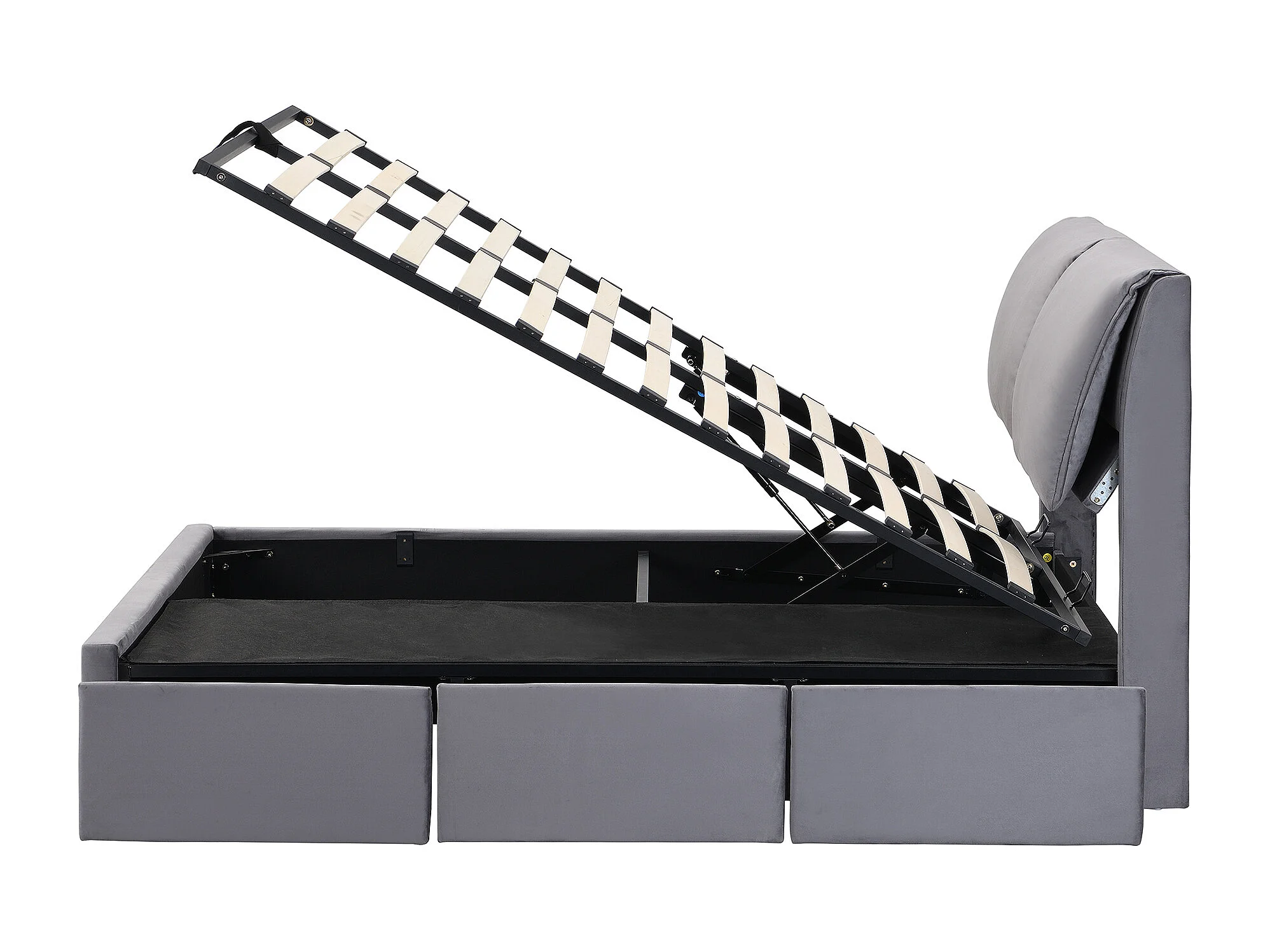 Lit coffre 140x190 cm avec sommier hydraulique et 3 tiroirs, tête de lit réglable en velours gris (Sans matelas)