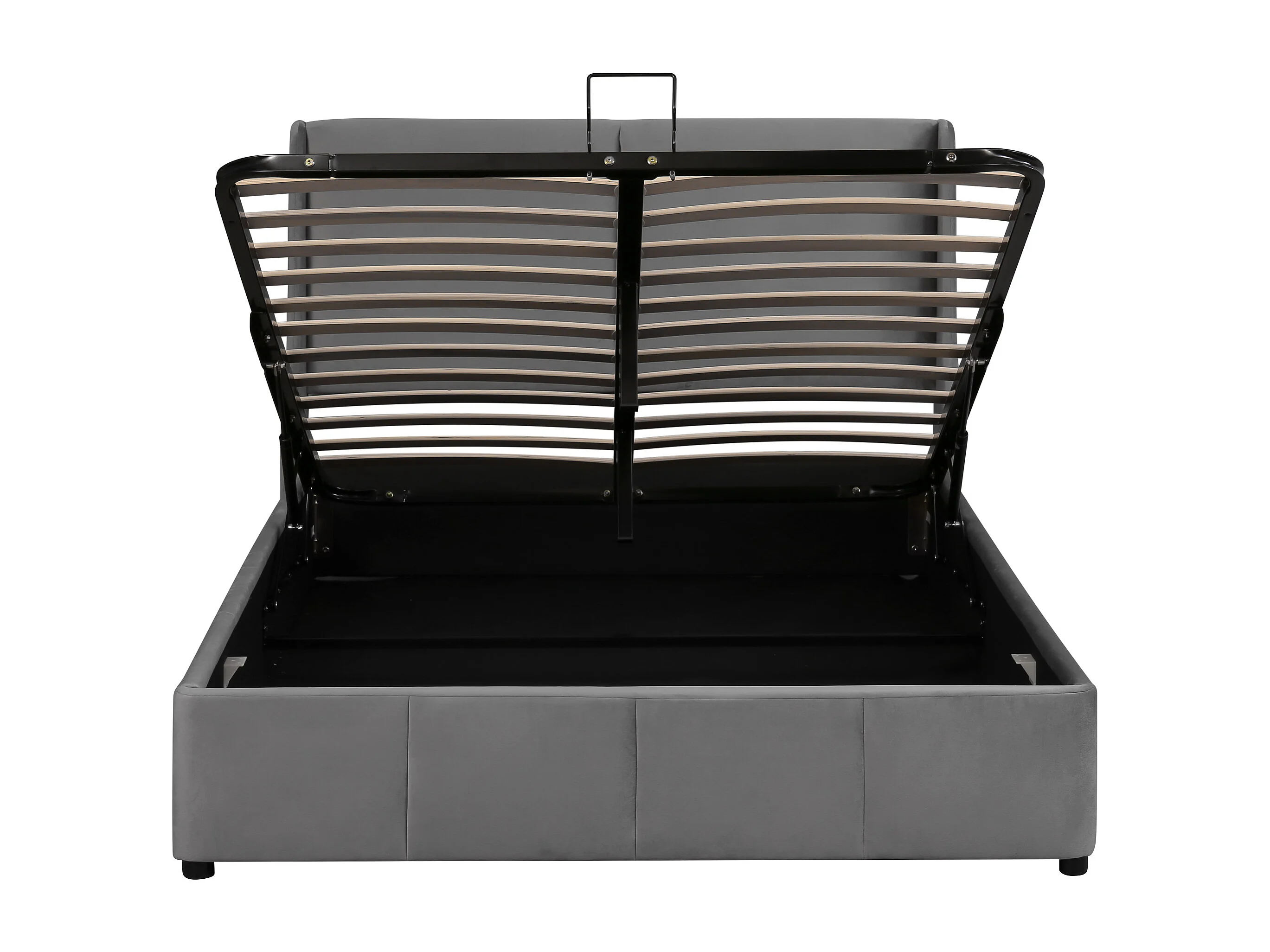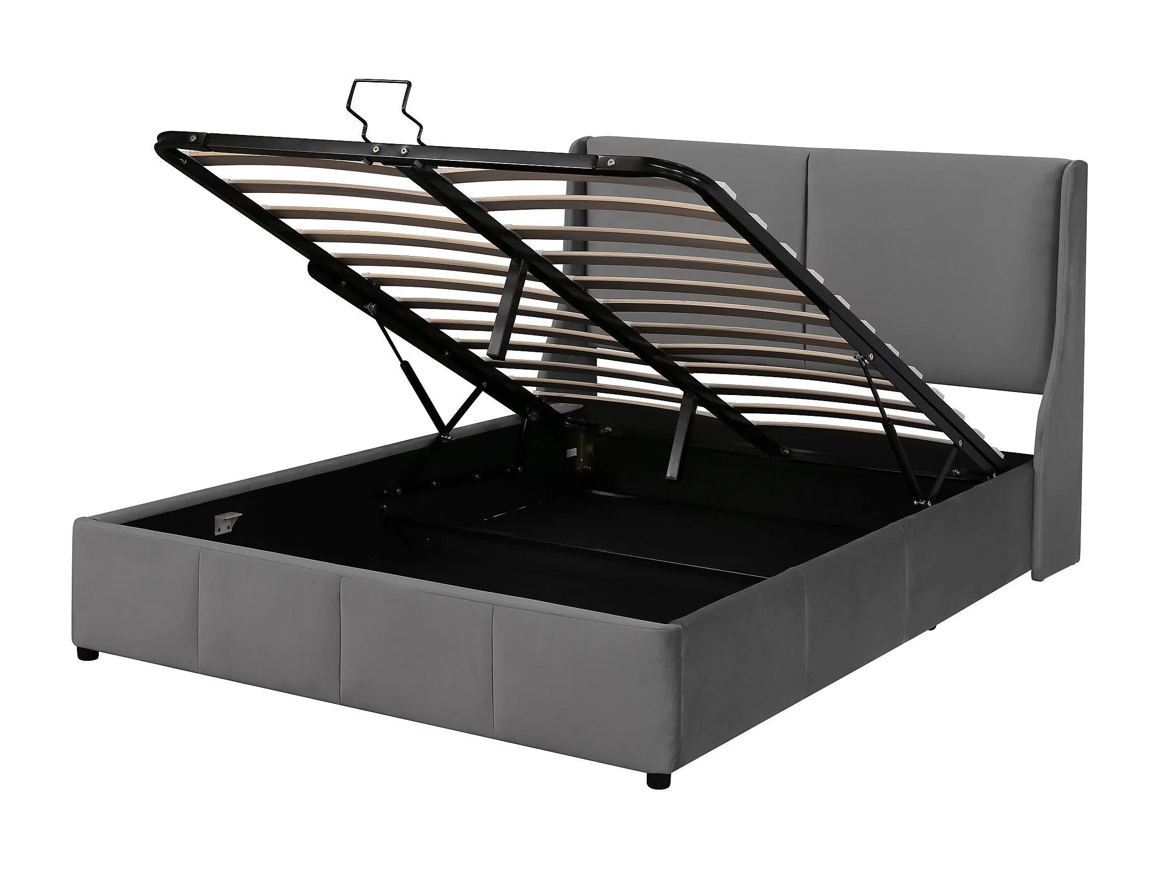 Lit coffre 140x200 cm avec rangement hydraulique et tête de lit, velours gris (Sans matelas)