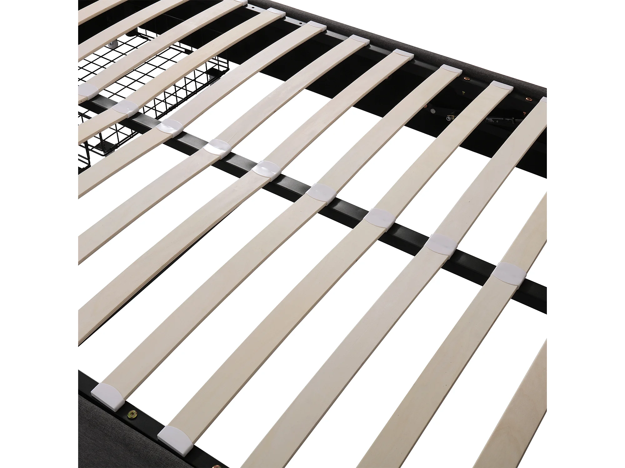 lit coffre 140x200 cm avec sommier - tête de lit de rangement à LED et tiroirs - lin - gris (sans matelas)