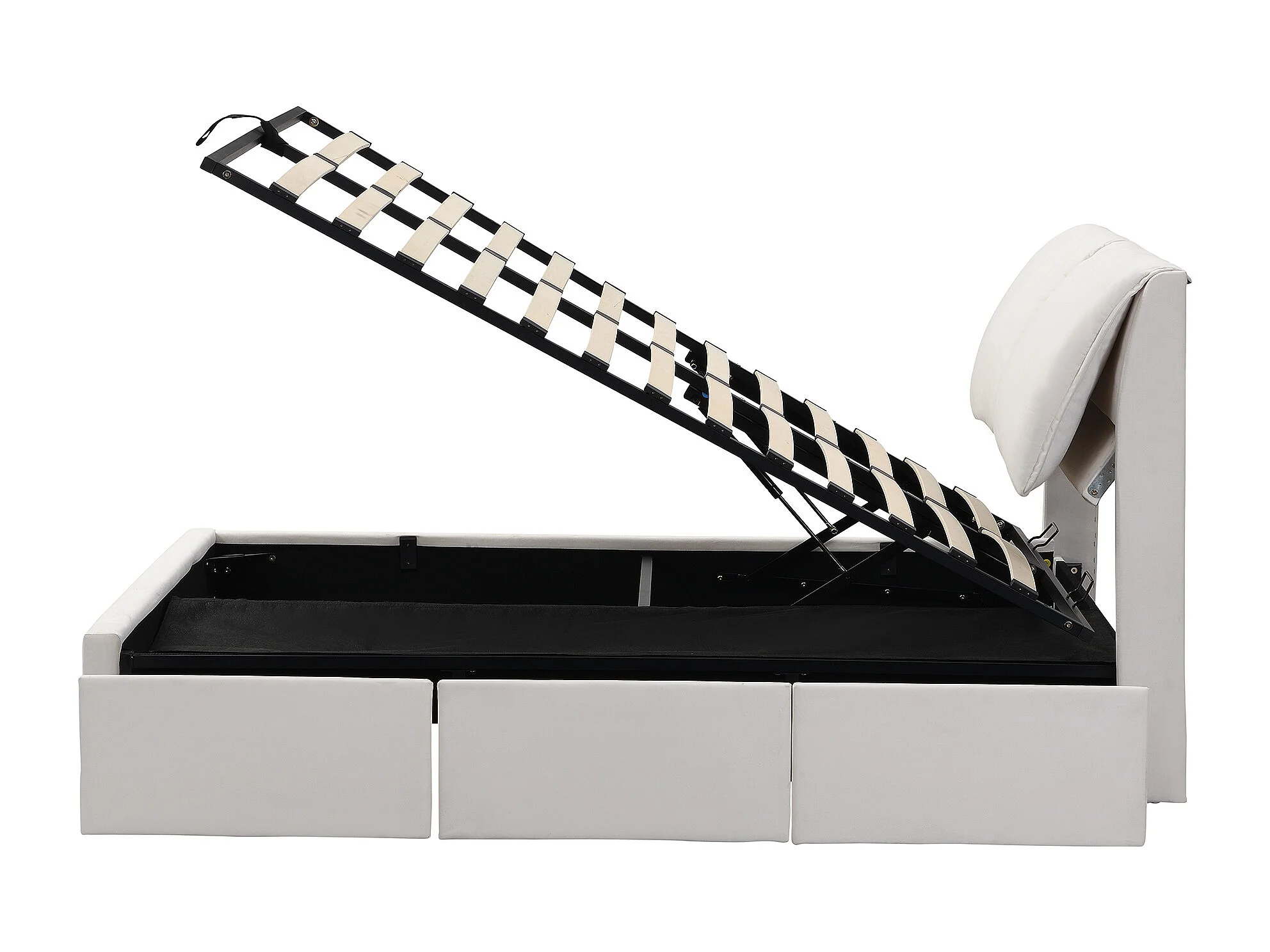 Lit coffre 140x200 cm avec sommier - tête de lit rembourré avec 3 tiroirs - velours - beige (sans matelas)