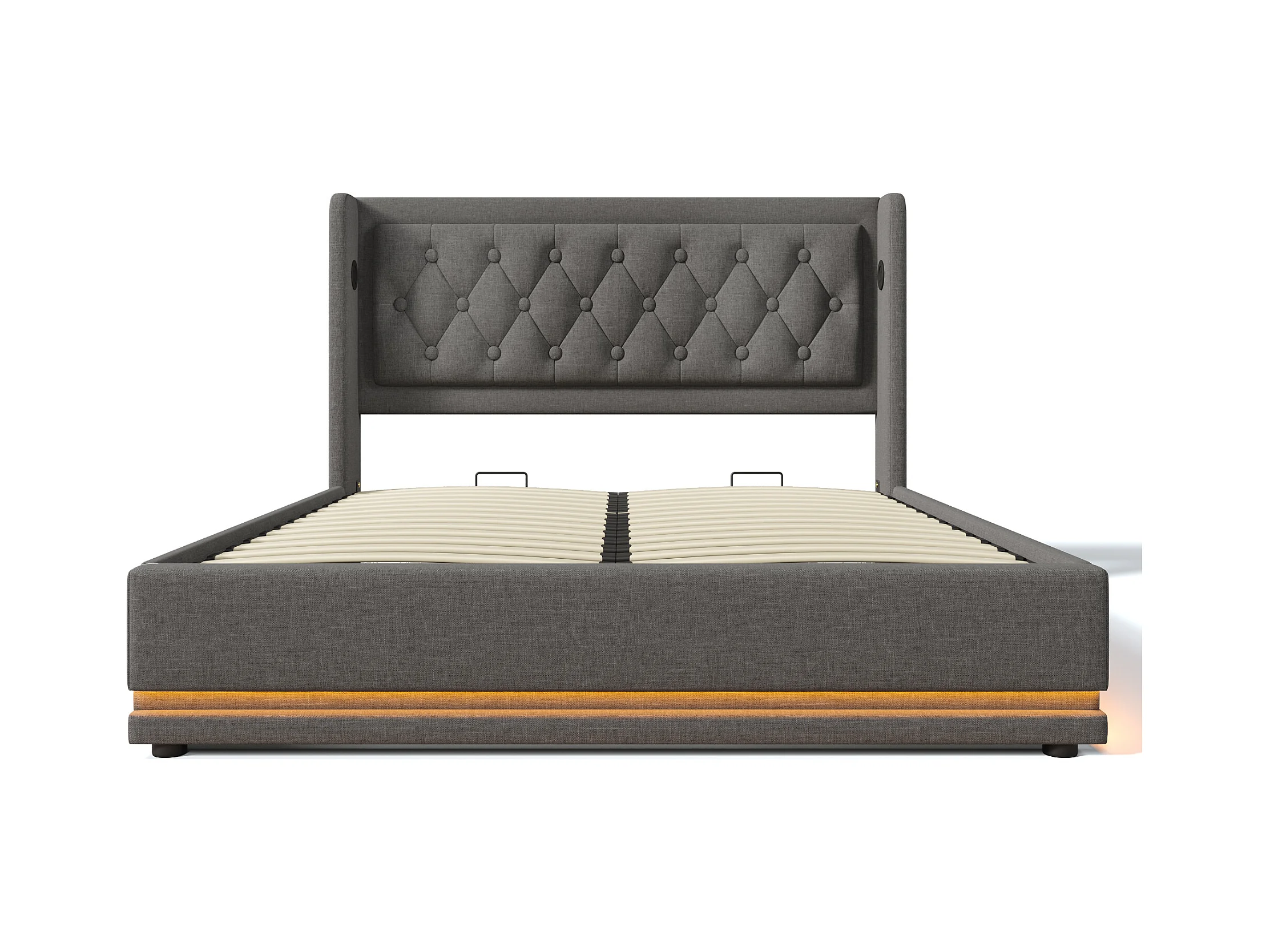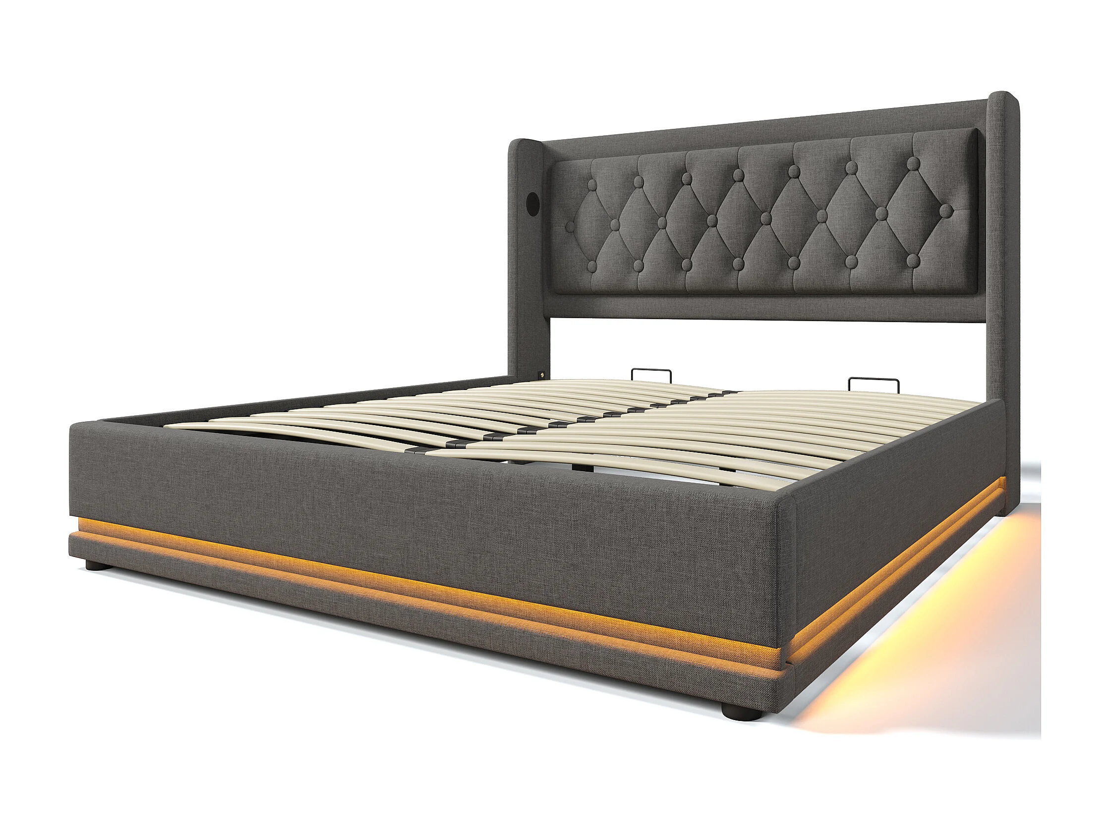 Lit coffre 140x200 cm - lit capitonné avec chargement USB Type-C et lumière LED - coton - gris - sans matelas