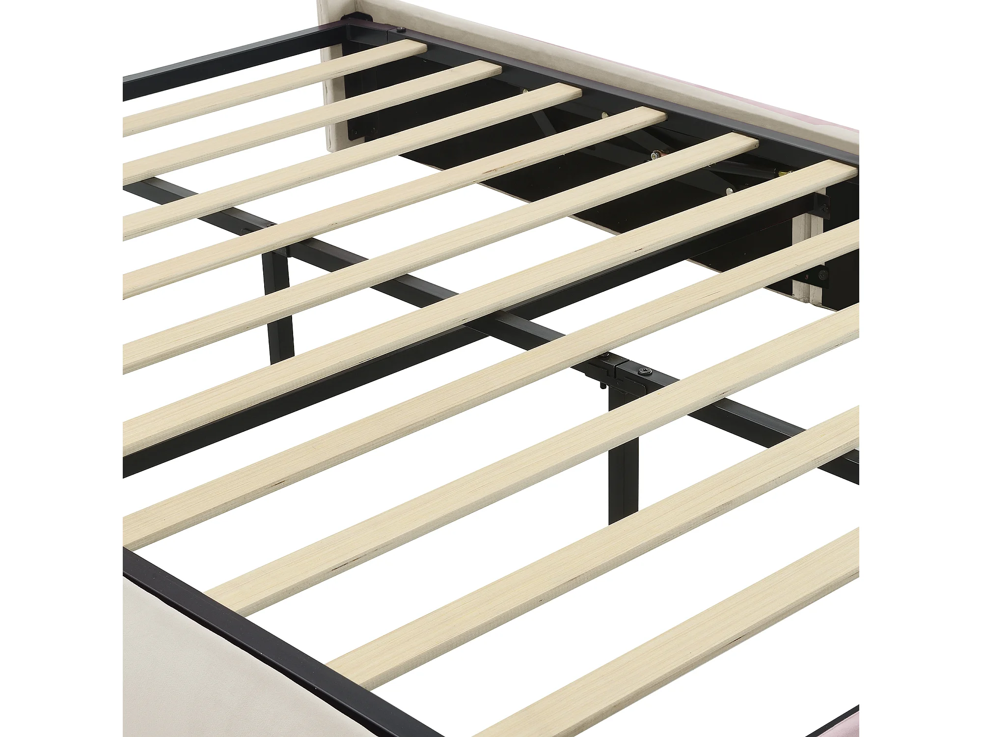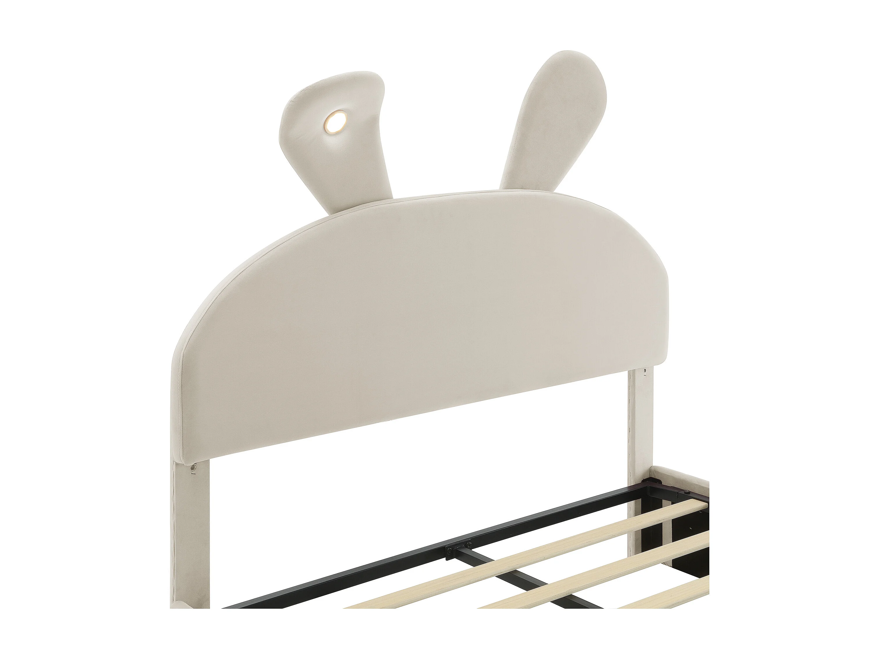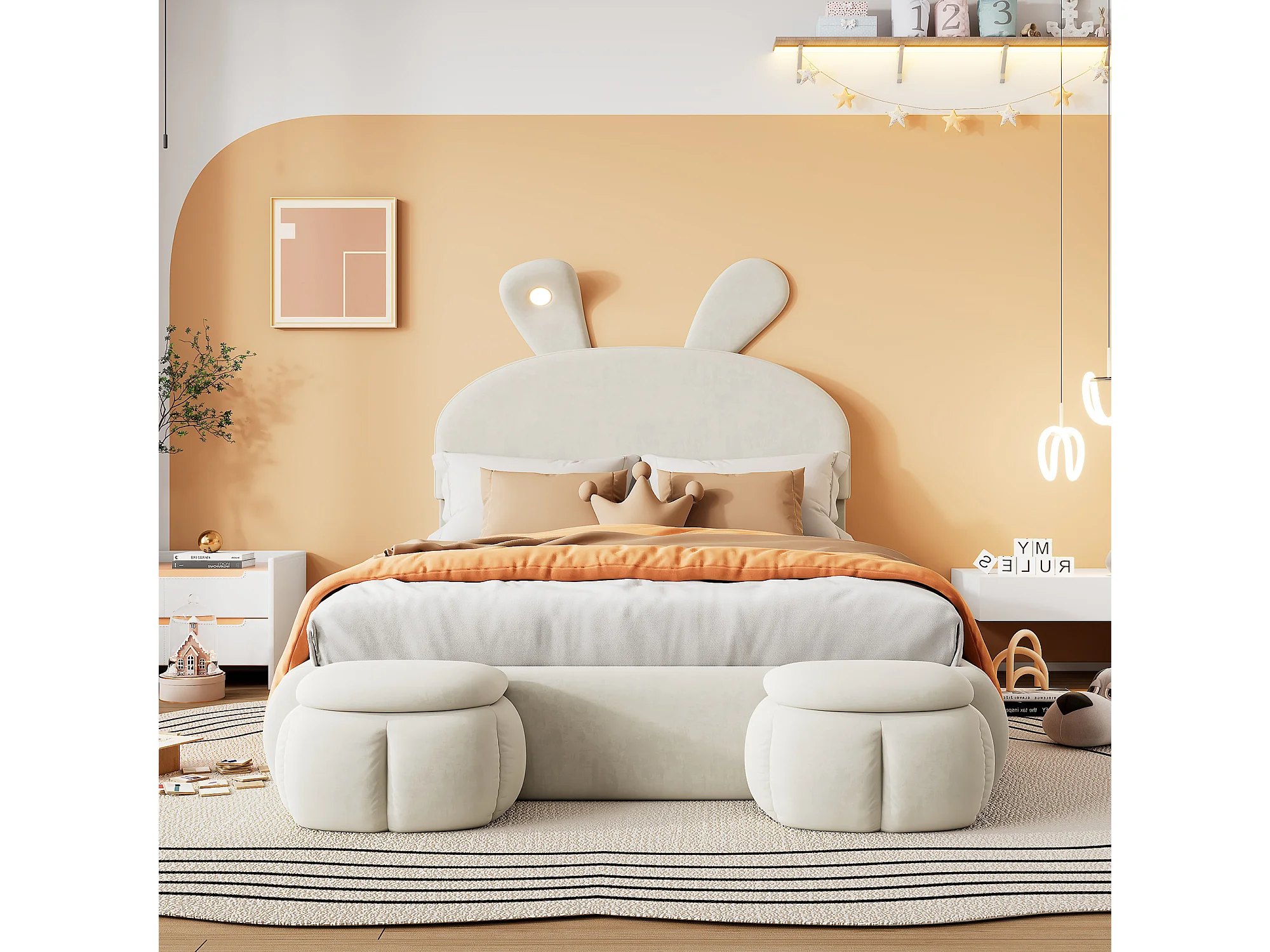 Lit Coffre 140x200cm avec LED espace de rangement et deux tabourets de rangement Revêtement en velours en beige pour enfants et adolescents