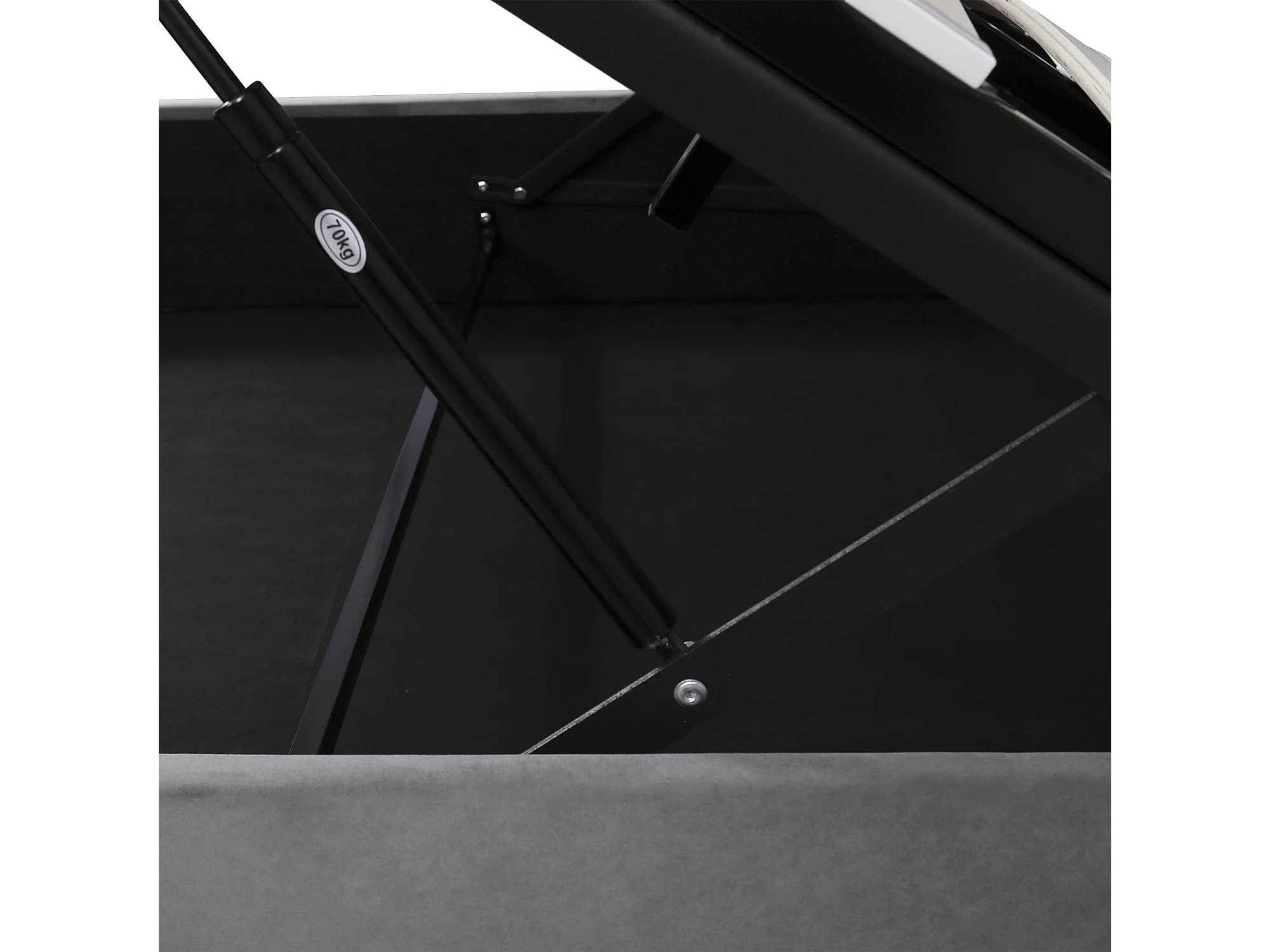 Lit Coffre 140x200cm avec table de chevet réglable en hauteur et compartiments de rangement en gris pour adultes et adolescents