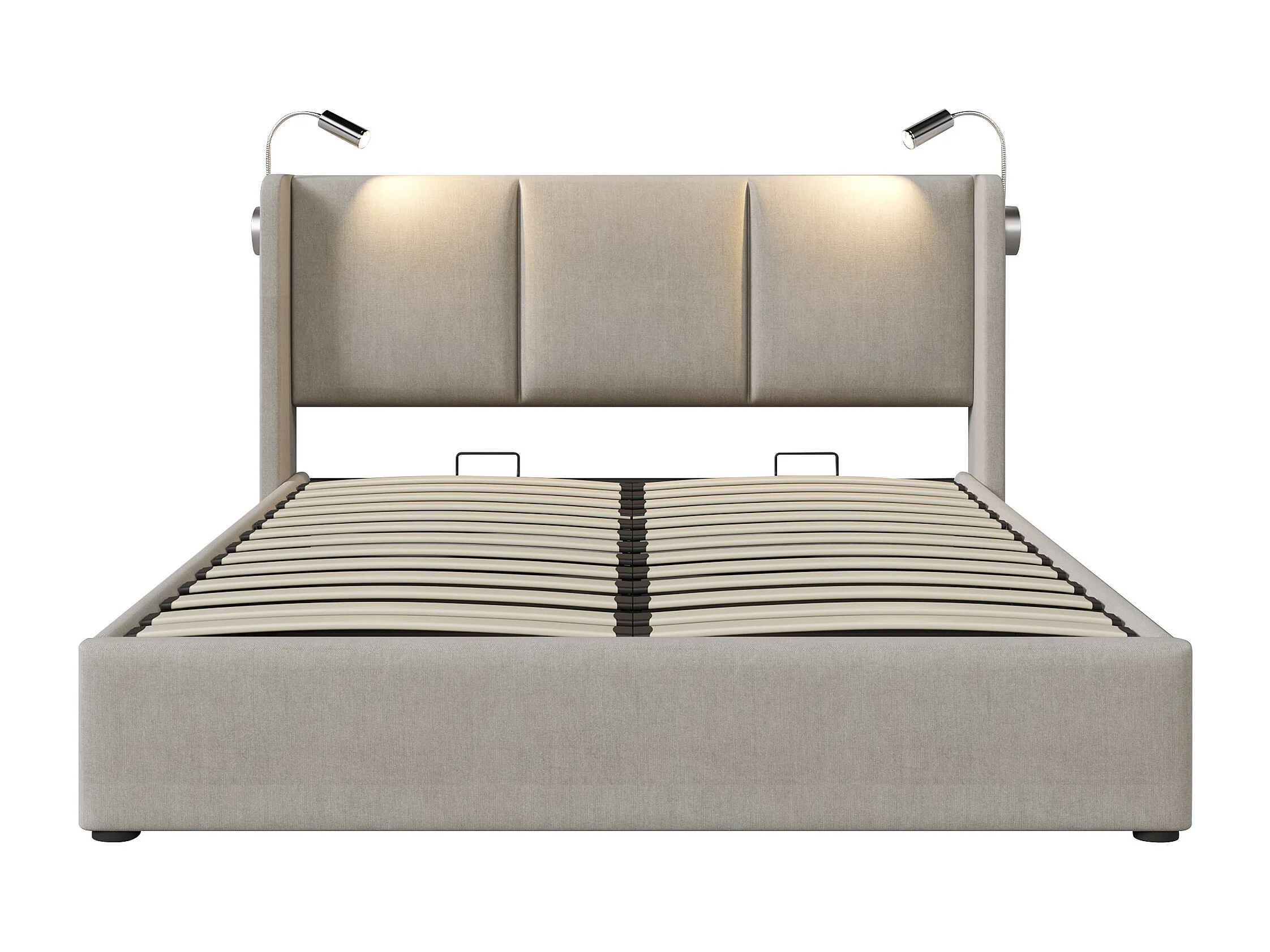 Lit coffre 140x200cm avec tête de lit lampe de lecture USB espace de rangement - Blanc - (Avec matelas)