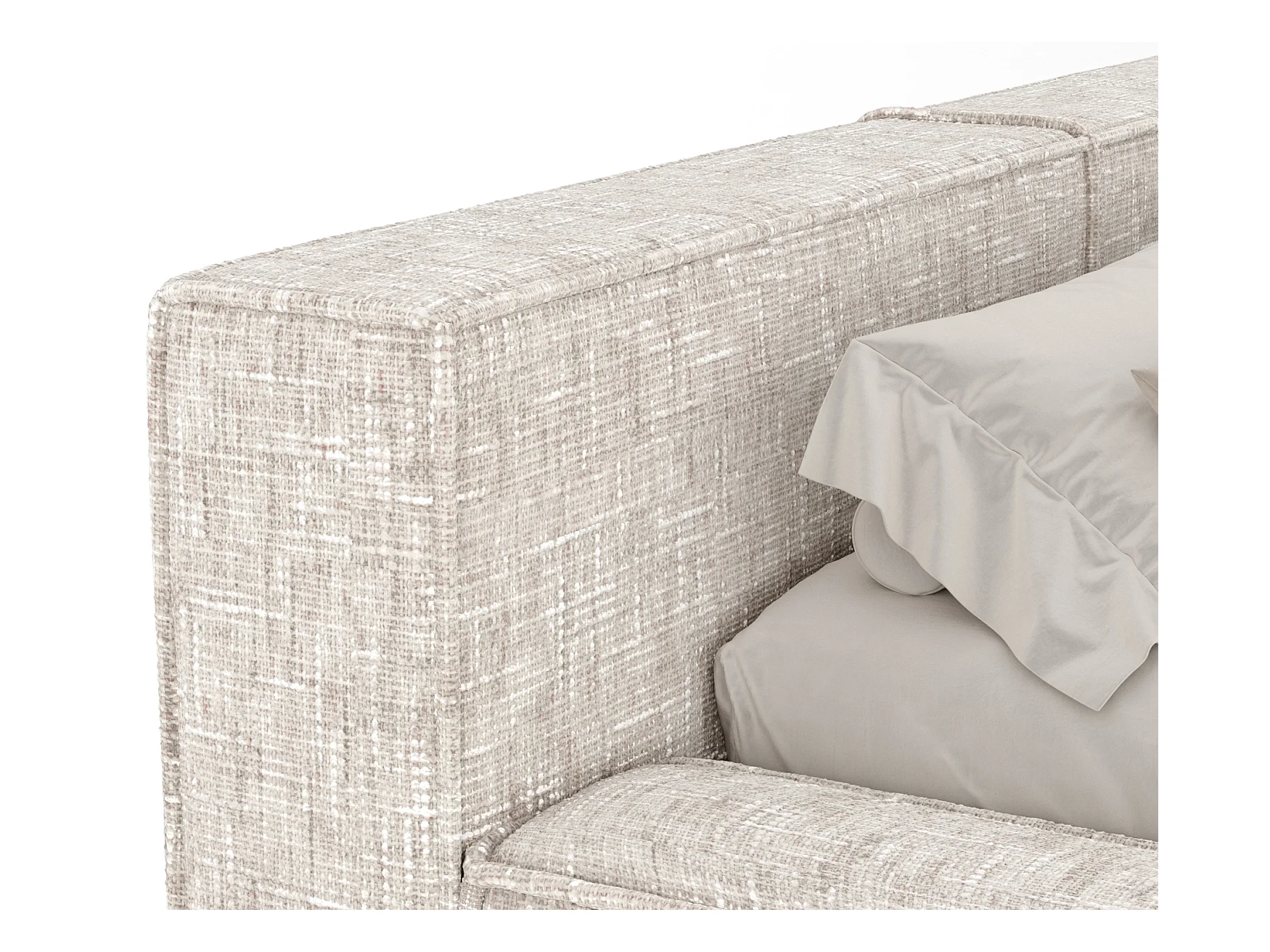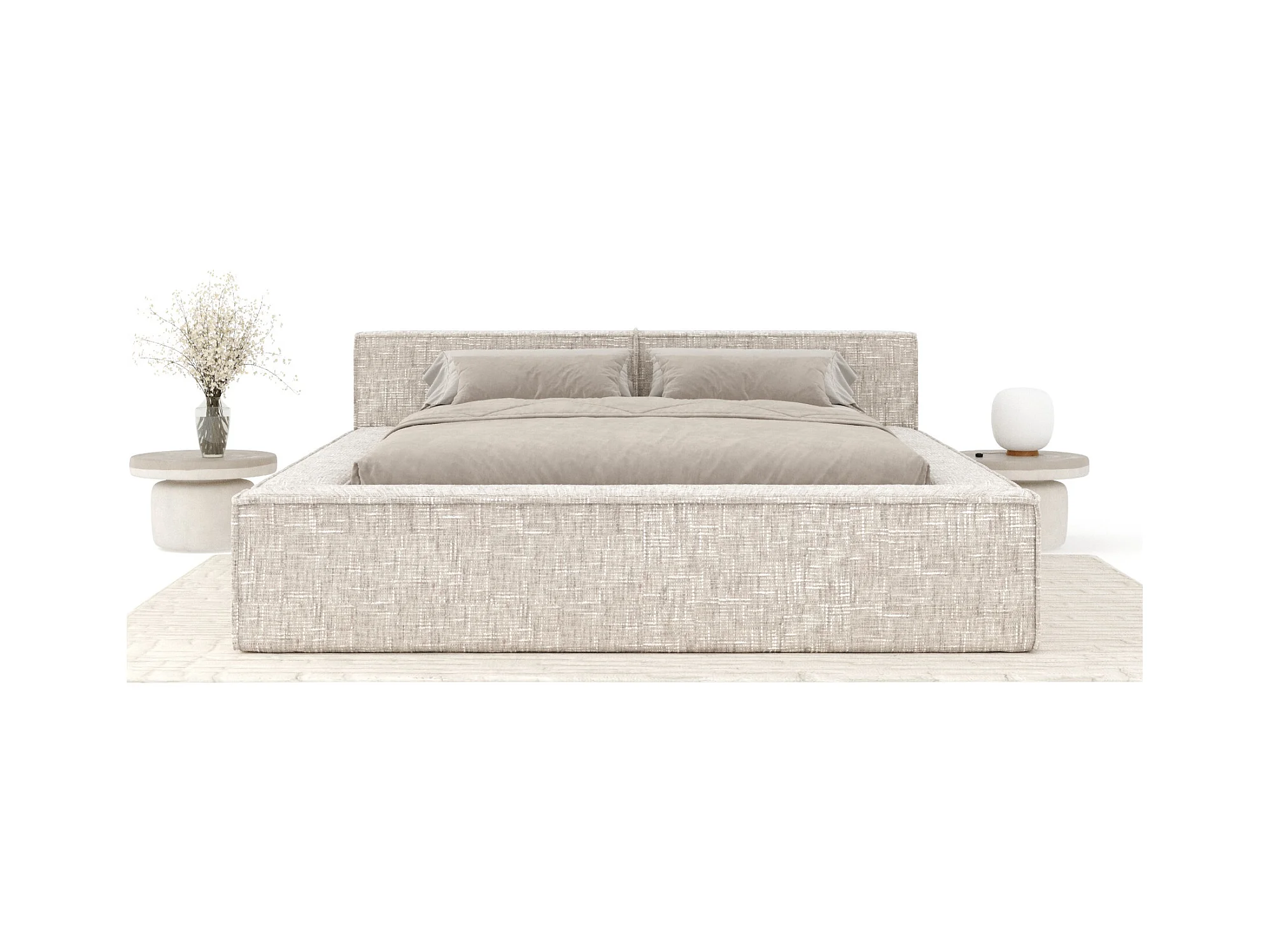 Lit coffre 160 x 200 cm avec tête de lit VOLIERA - en tissu tressé - creme