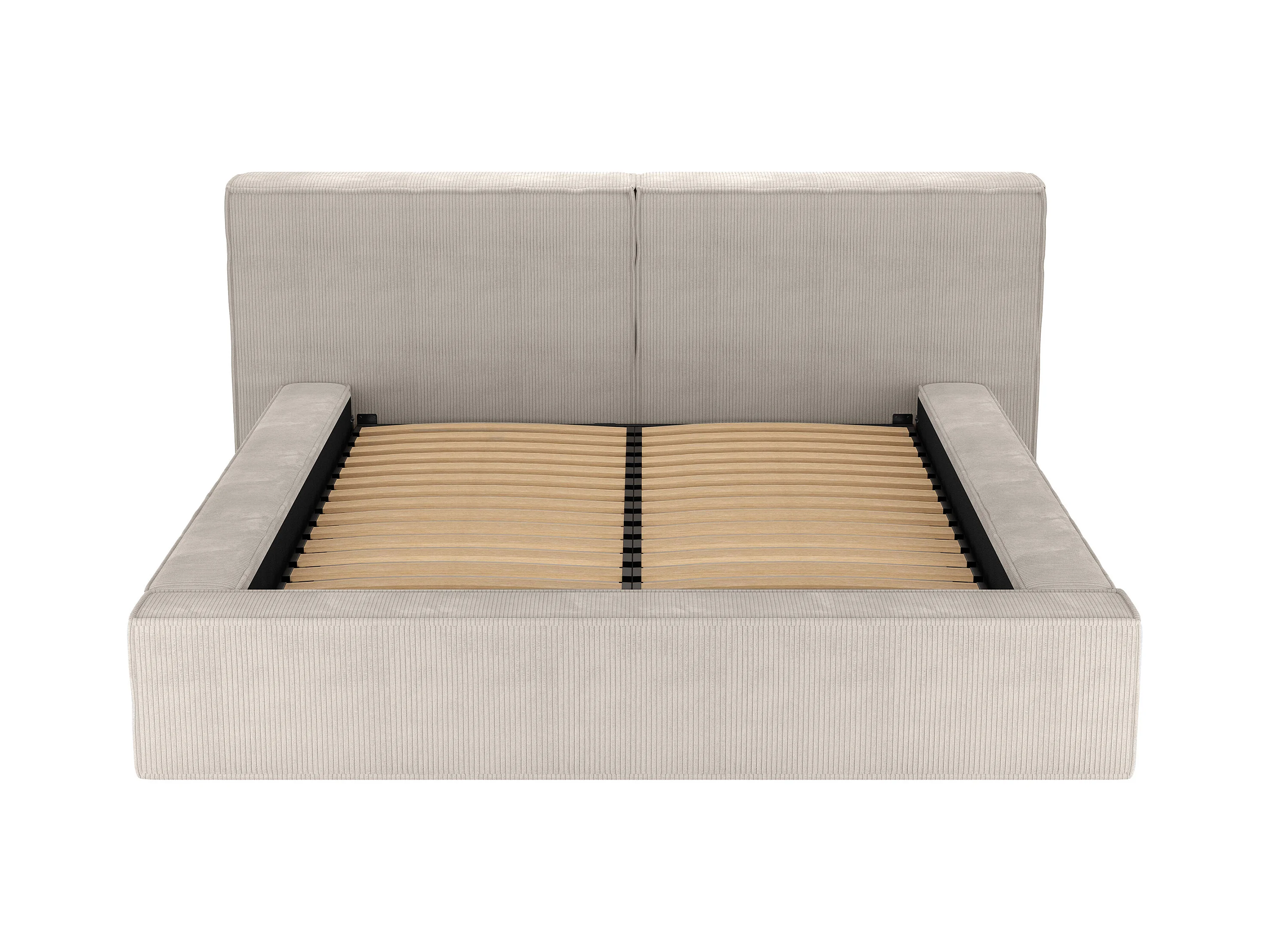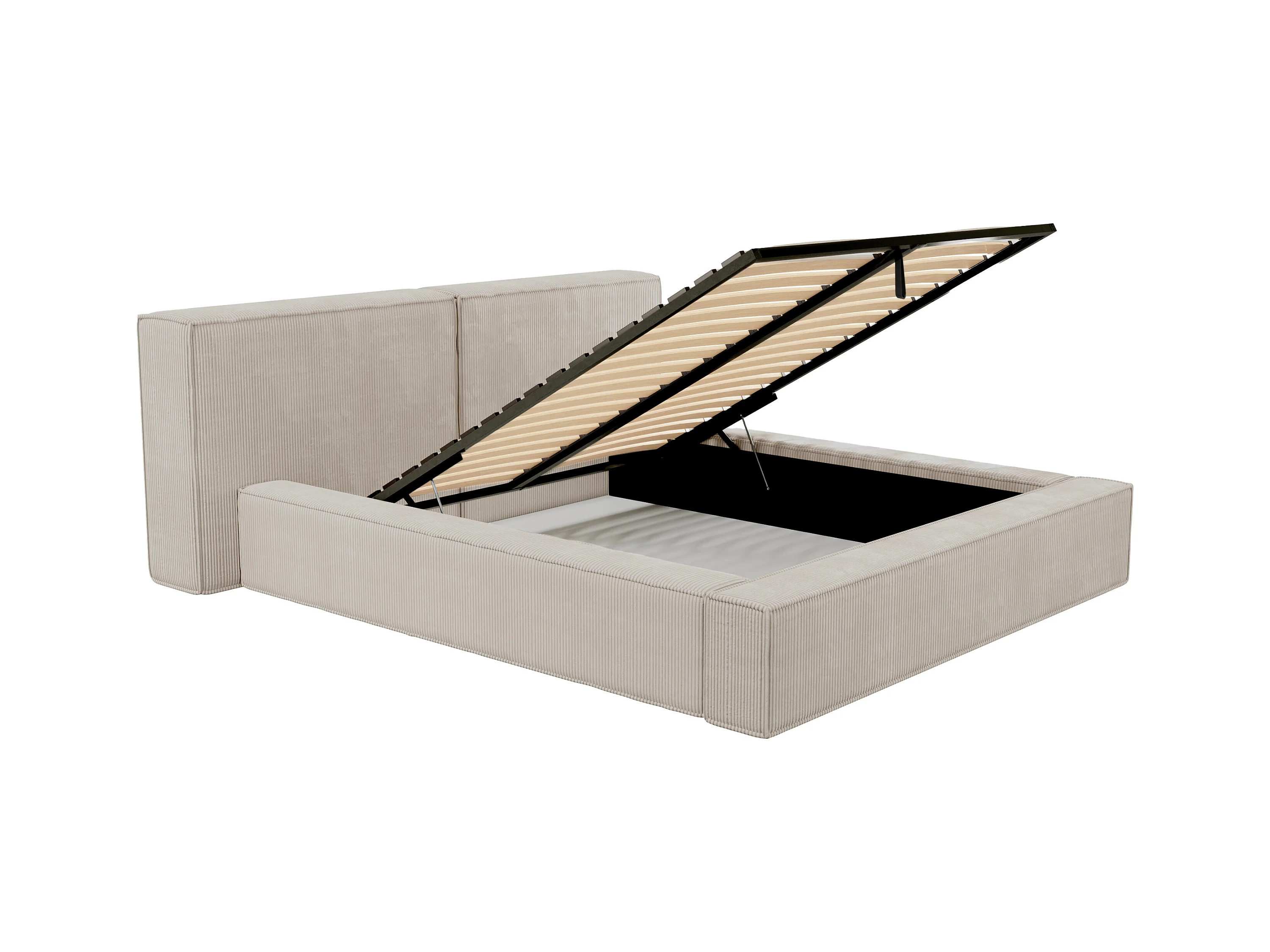 Lit coffre 160 x 200 cm - Velours côtelé - Beige + Matelas - TIMANO de Pascal Morabito