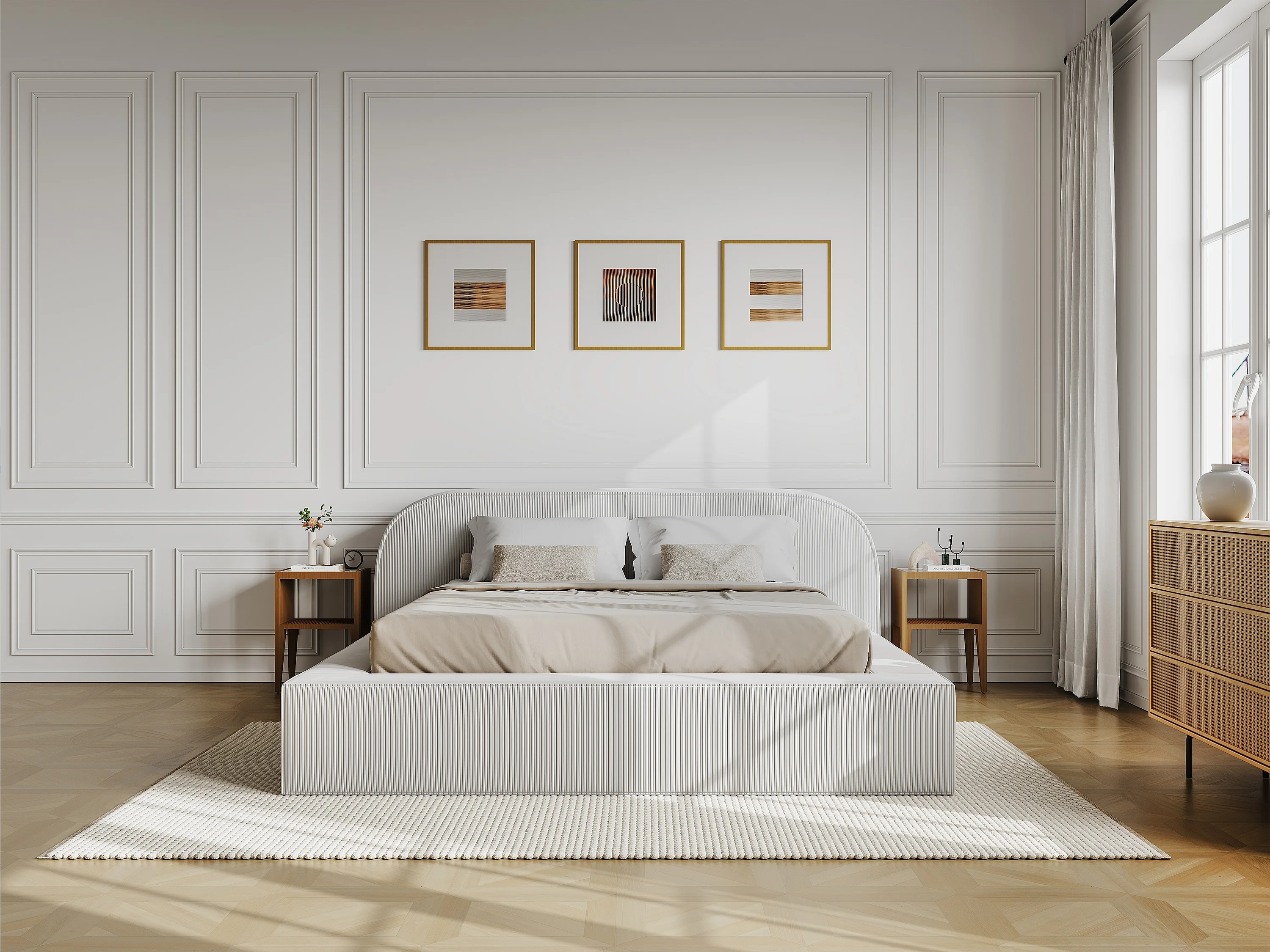 • Une texture raffinée : Le velours côtelé ajoute une touche chaleureuse et contemporaine.