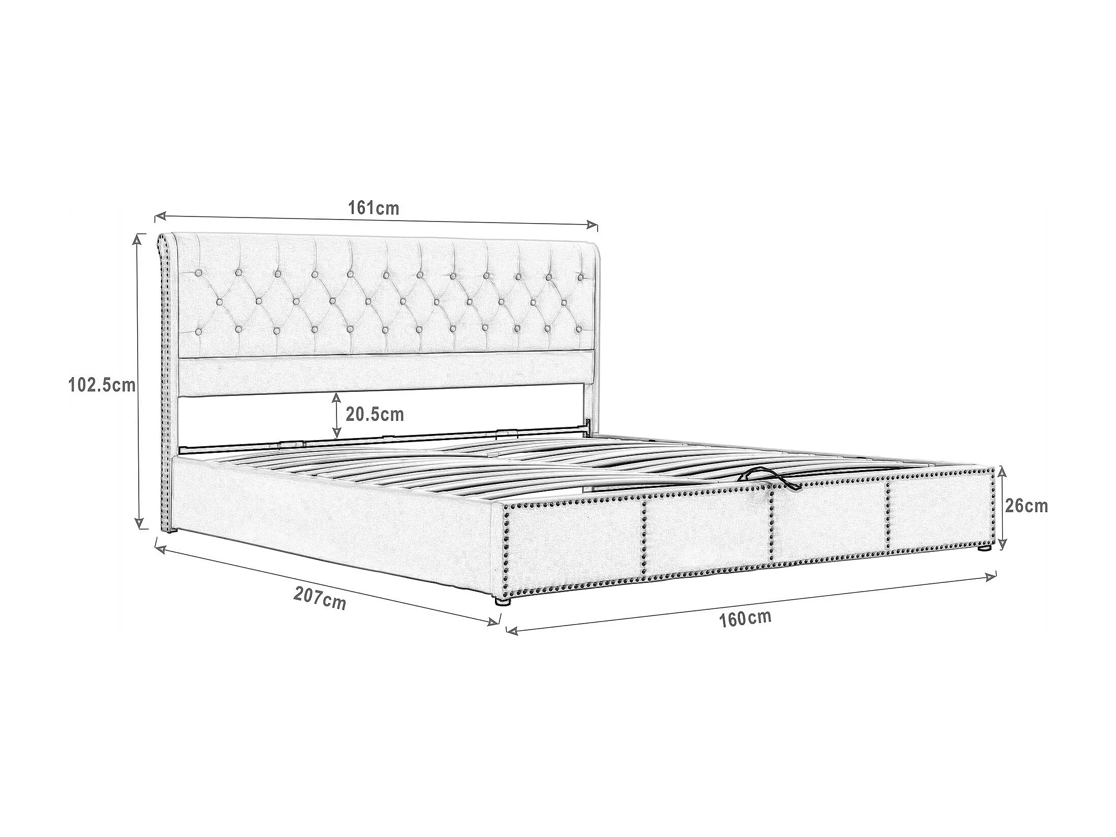 Lit coffre 160x200 cm avec sommier à lattes - tête de lit capitonnée en velours - gris (sans matelas)