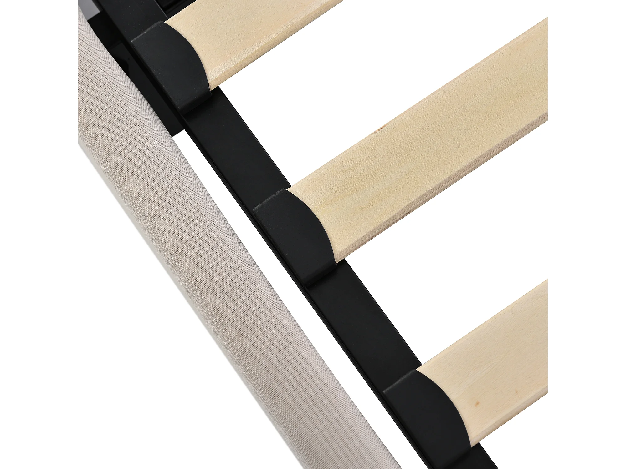 Lit coffre 160x200 cm avec sommier - tête de lit capitonnée - cadre de lit en métal - lin beige (sans matelas)