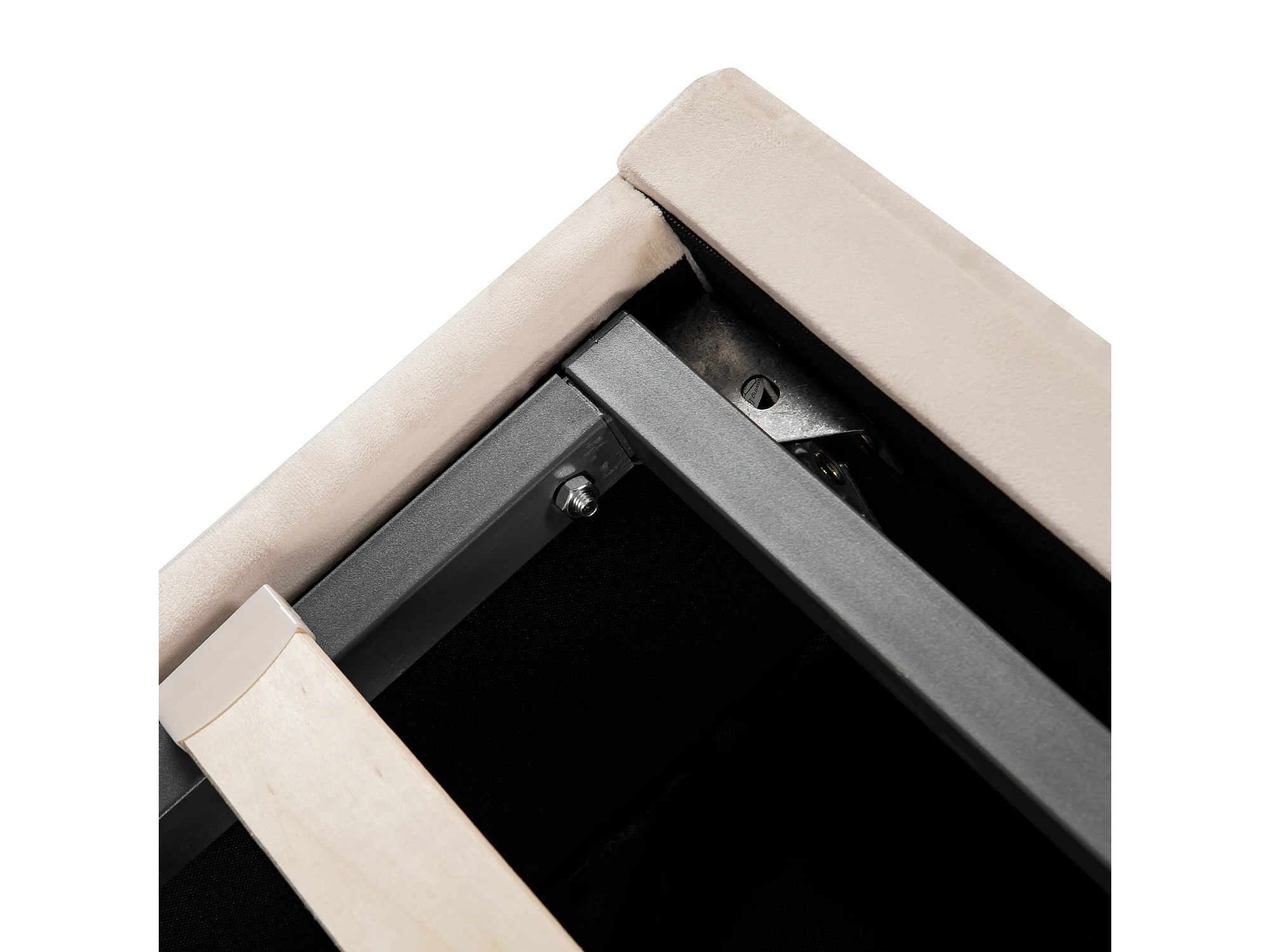 Lit coffre 160x200 cm avec sommier - tête de lit réglable en hauteur - métal + bois - velours beige (sans matelas)