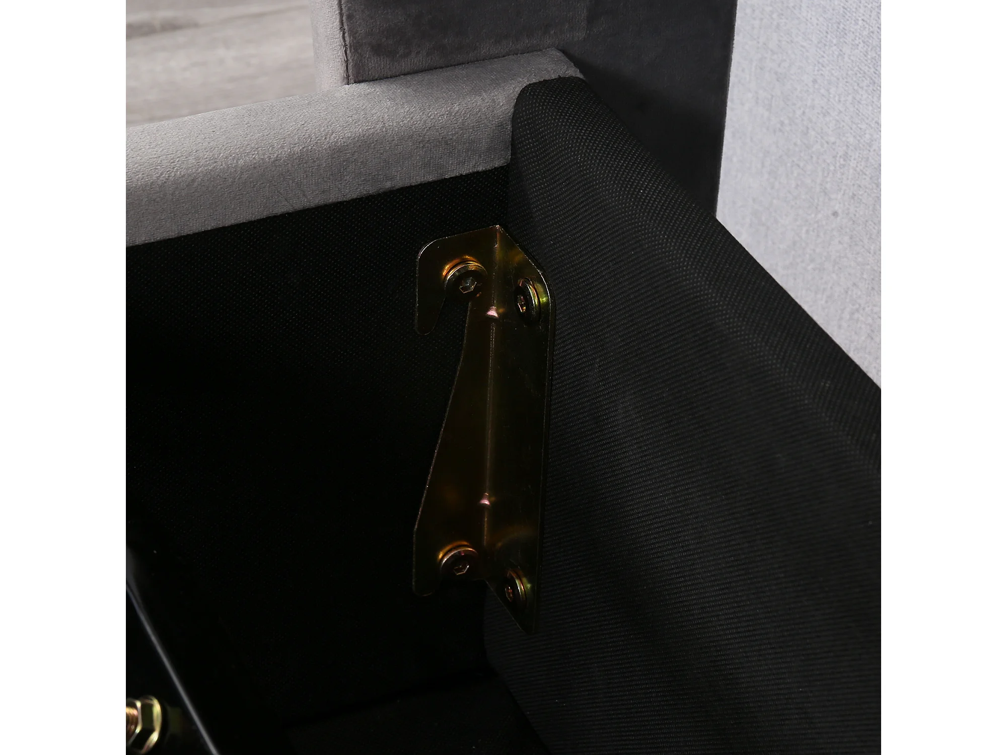 Lit coffre 160x200 cm lit 2 places avec sommier et tête de lit en forme d'oreillel - gris velours (sans matelas)
