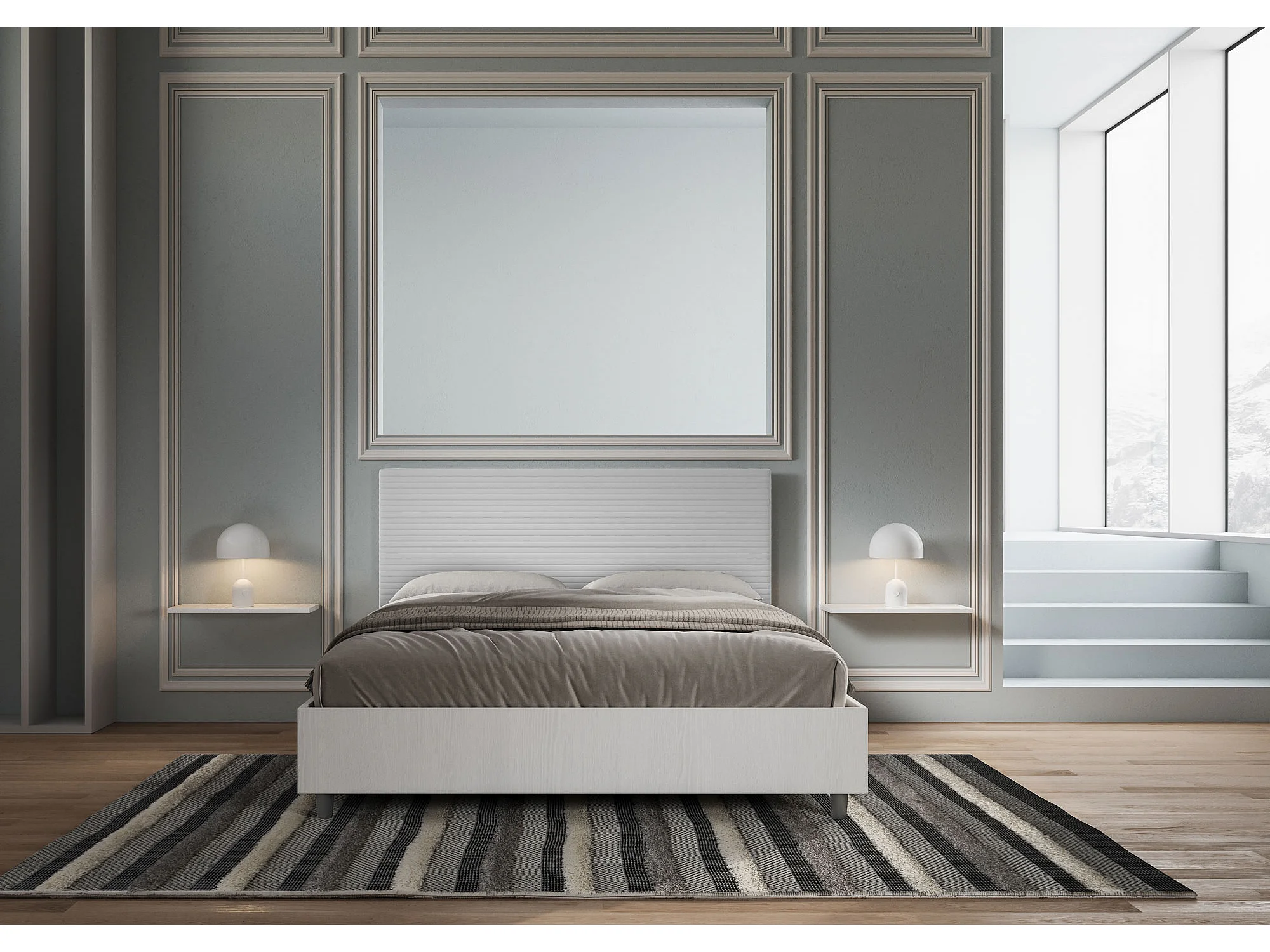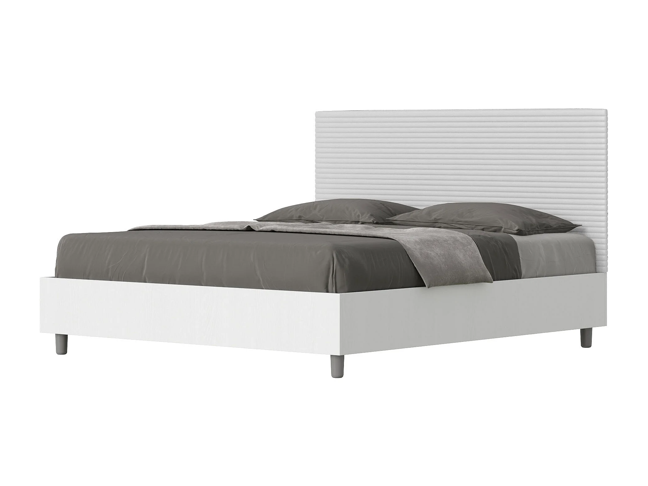 Lit coffre 160x200 structure frêne blanc tête de lit similicuir blanc Level