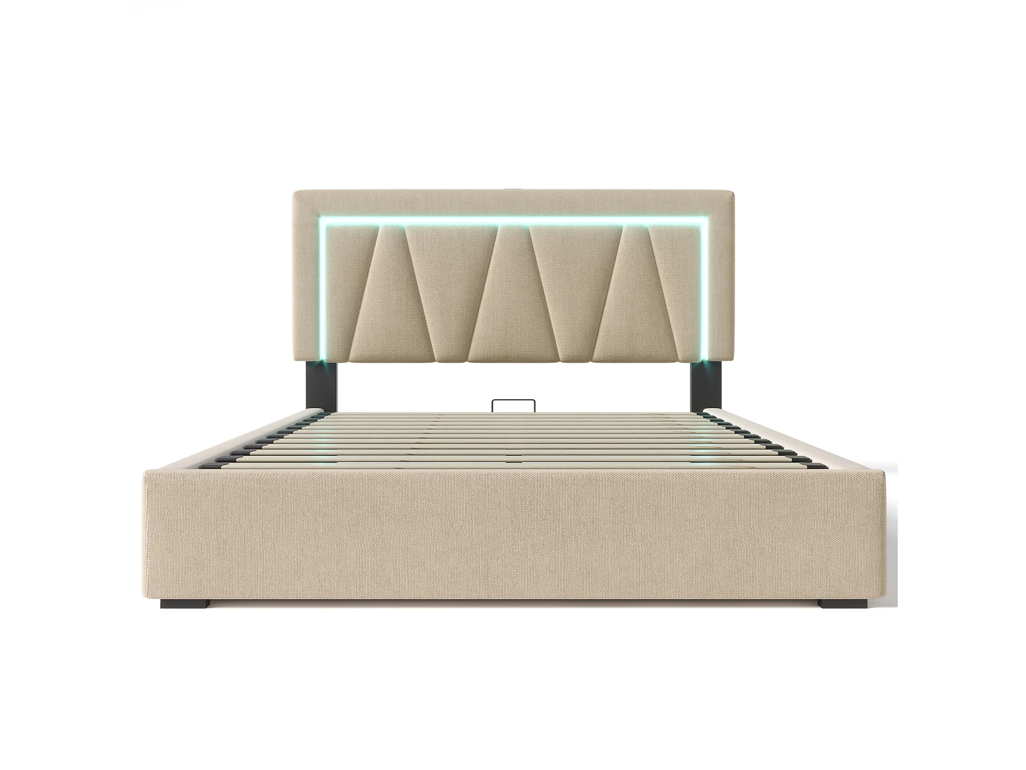 Lit Coffre 160x200cm avec LED USB espace de rangement et matelas beige pour enfants et adultes et adolescents