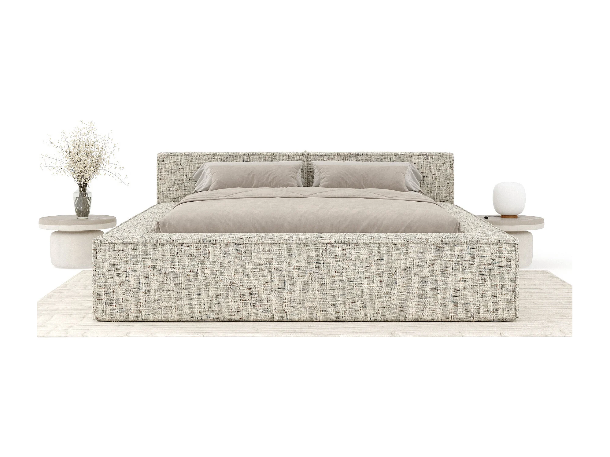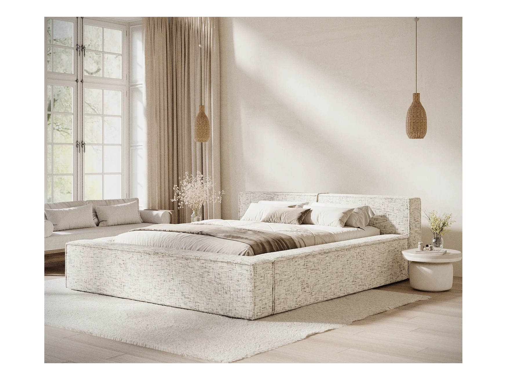 Lit coffre 180 x 200 cm avec tête de lit VOLIERA - en tissu tressé - beige