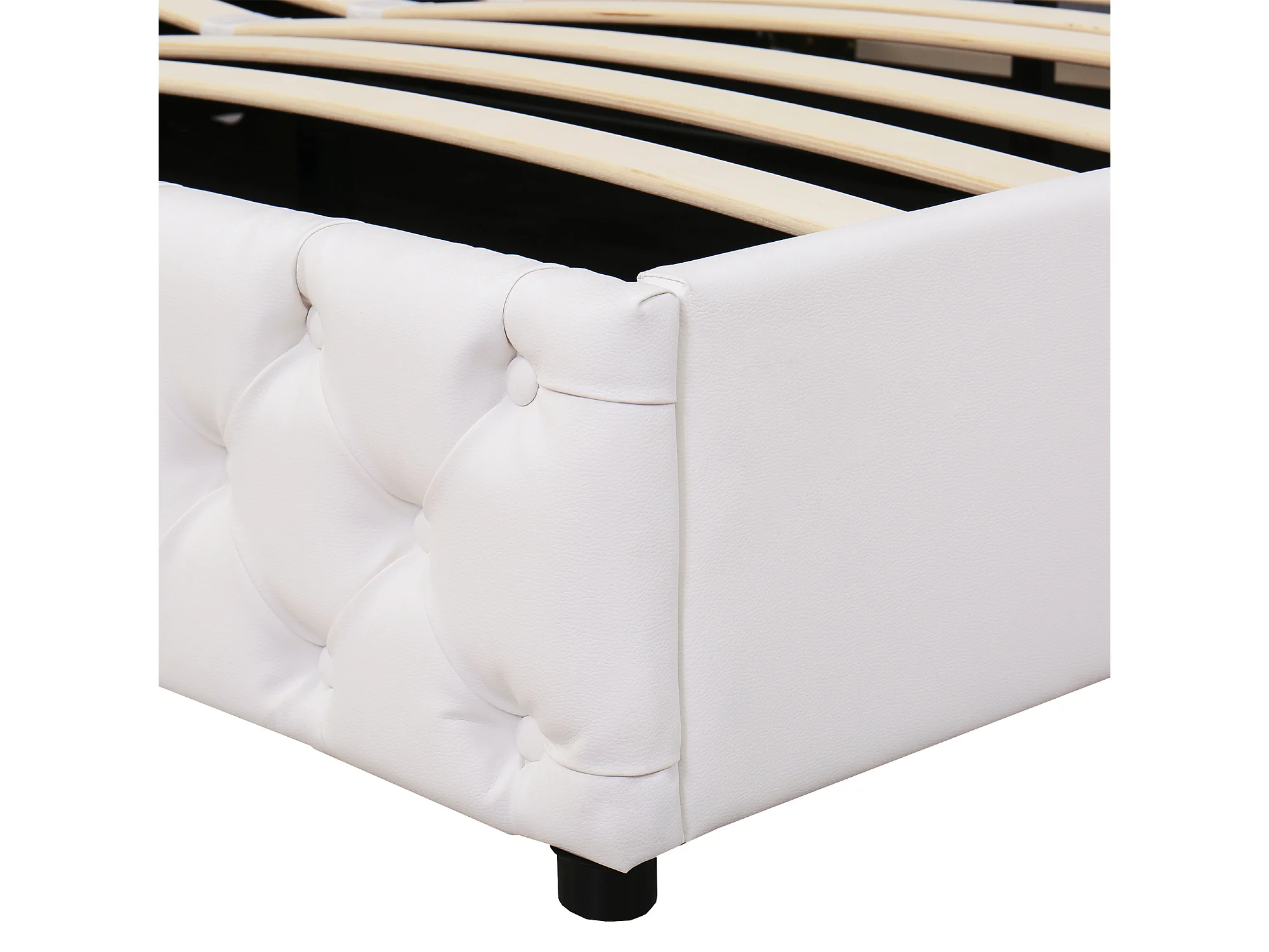 Lit coffre 180x200 cm avec sommier en bois - tête de lit capitonnée avec LED - similicuir - blanc (sans matelas)