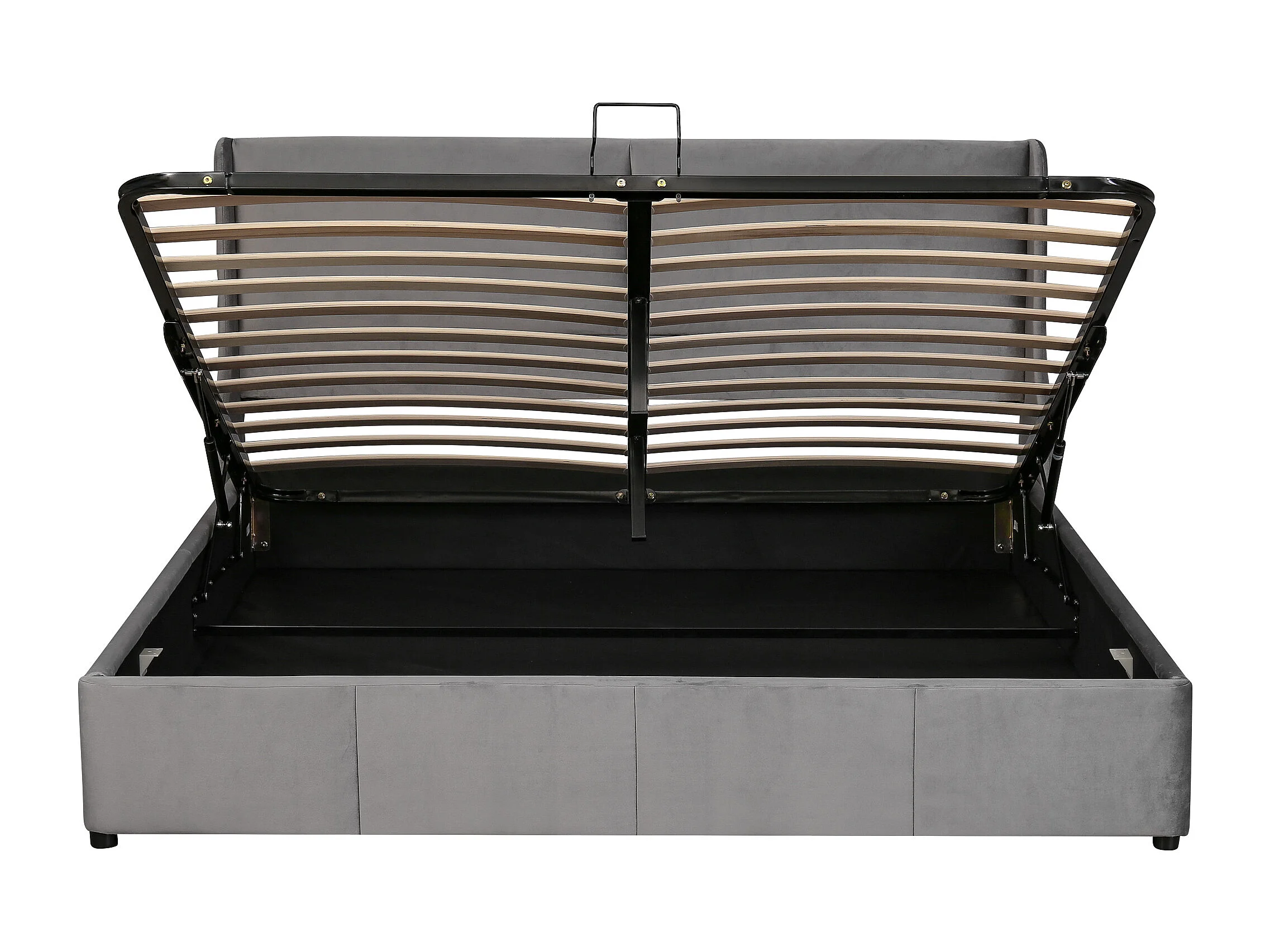 Lit coffre 180x200 cm avec tête de lit à oreilles et sommier à lattes, rangement, velours gris (Sans matelas)
