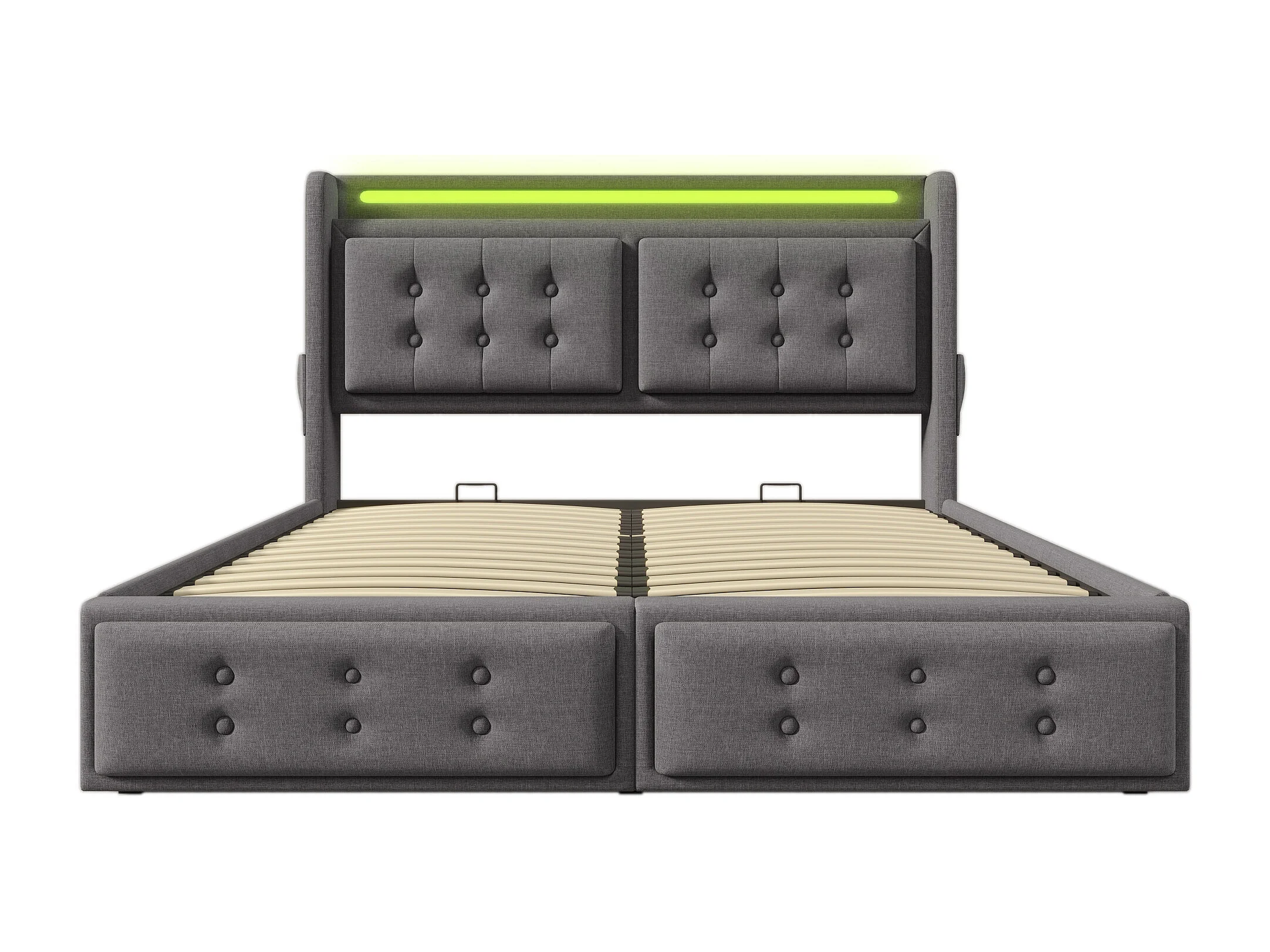 Lit coffre 180x200 cm avec sommier - tête de lit capitonnée avec USB et LED - coton et lin - gris (sans matelas)