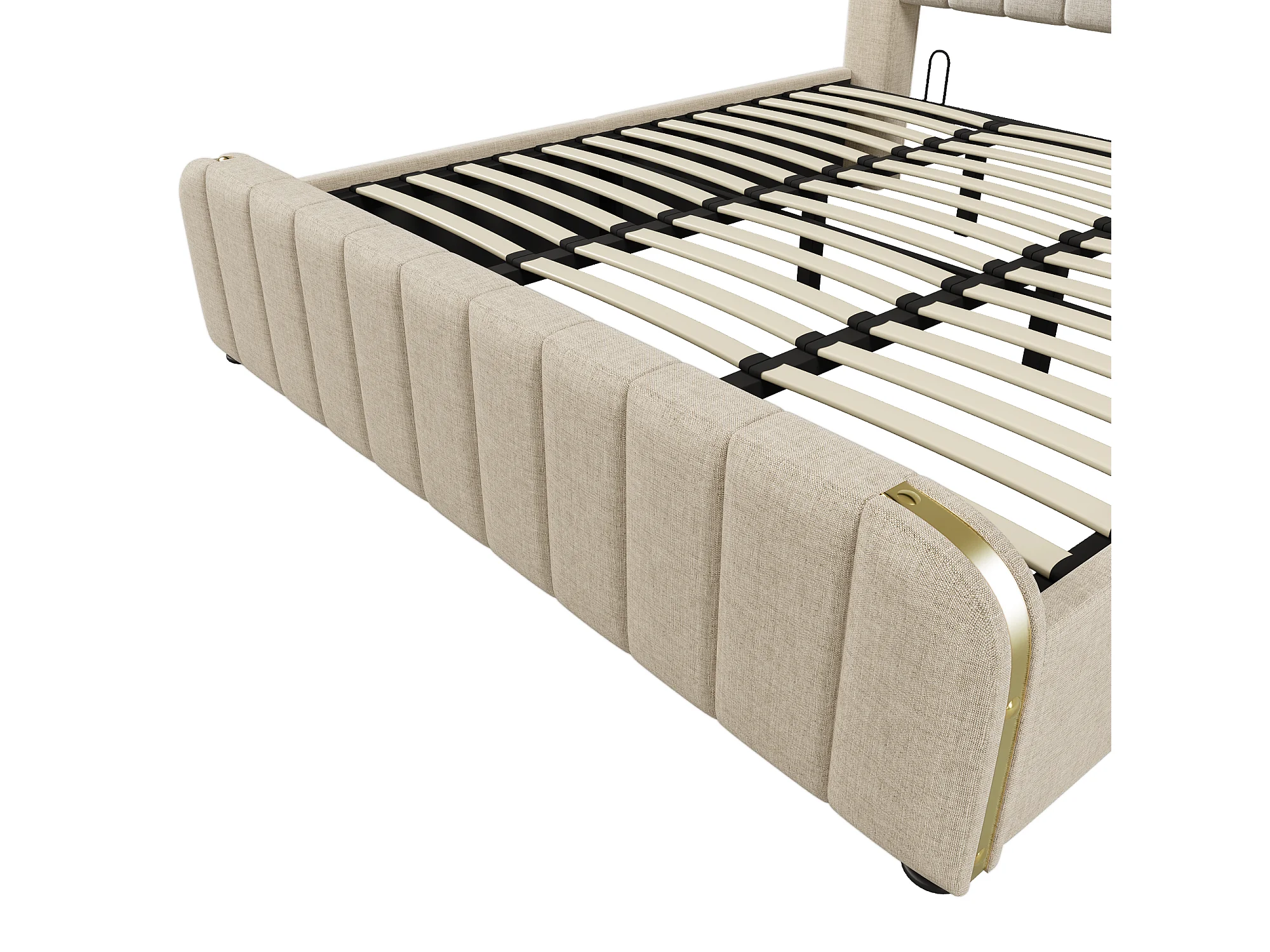 Lit coffre 180x200 cm avec sommier - tête de lit capitonnée avec USB - tissu lin - beige (sans matelas)