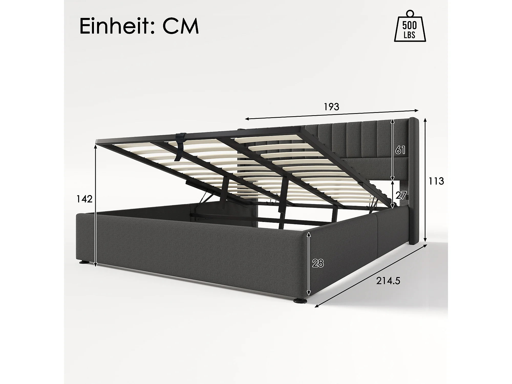Lit coffre 180x200 cm avec sommier - tête de lit capitonnée - cadre de lit en métal - lin gris (sans matelas)