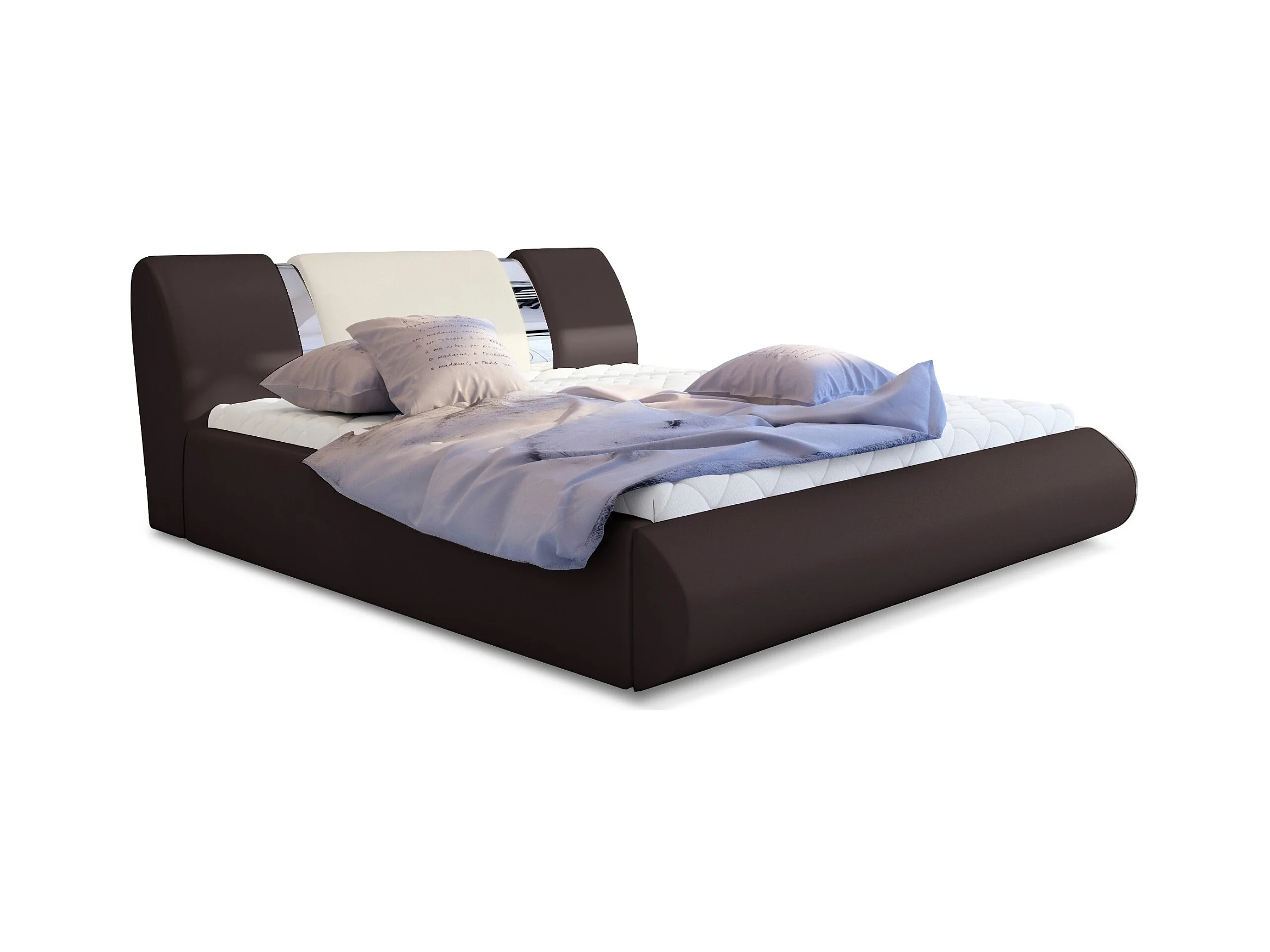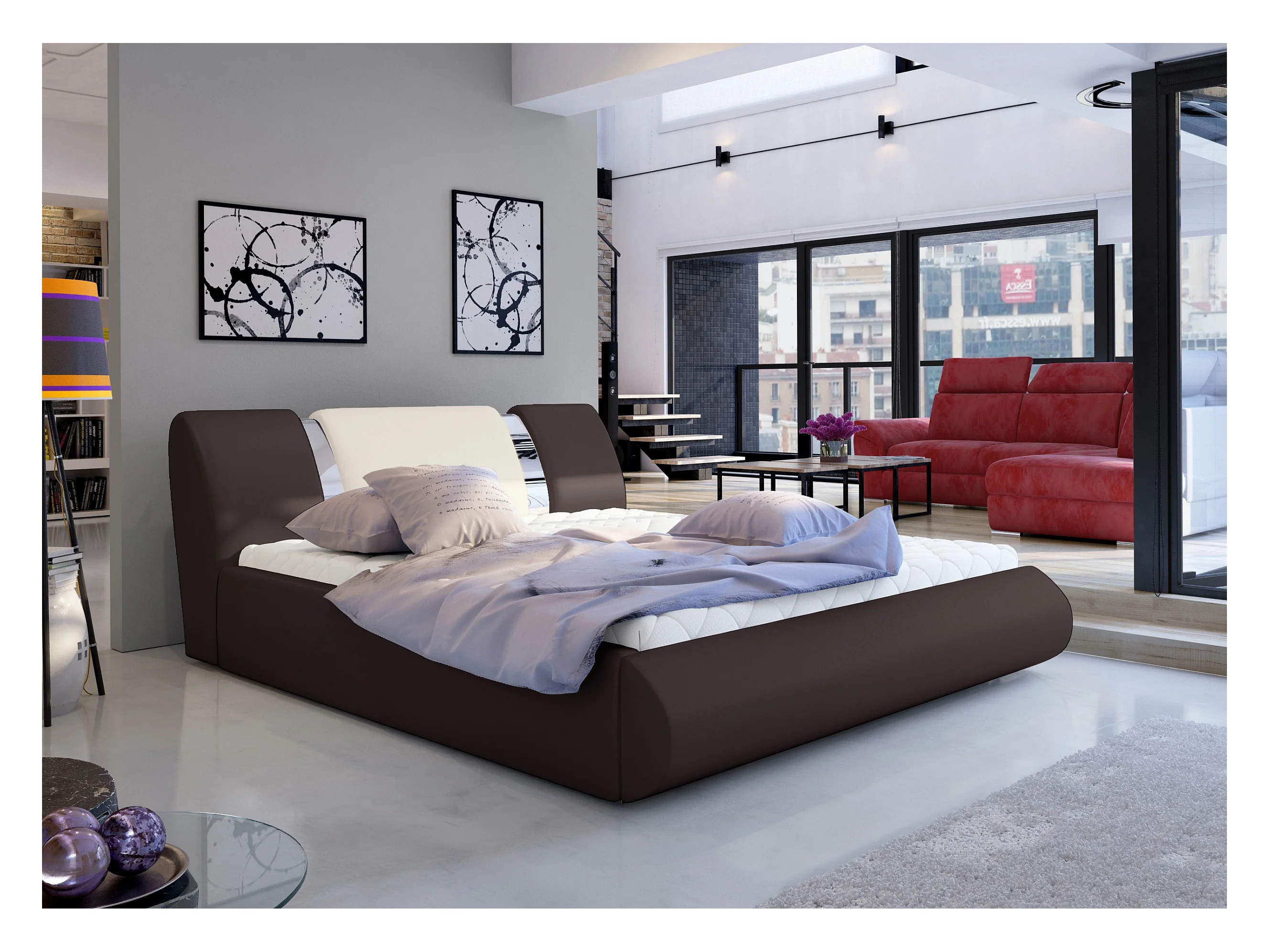 Lit coffre 180x200 simili marron-beige et métal chromé Flavien