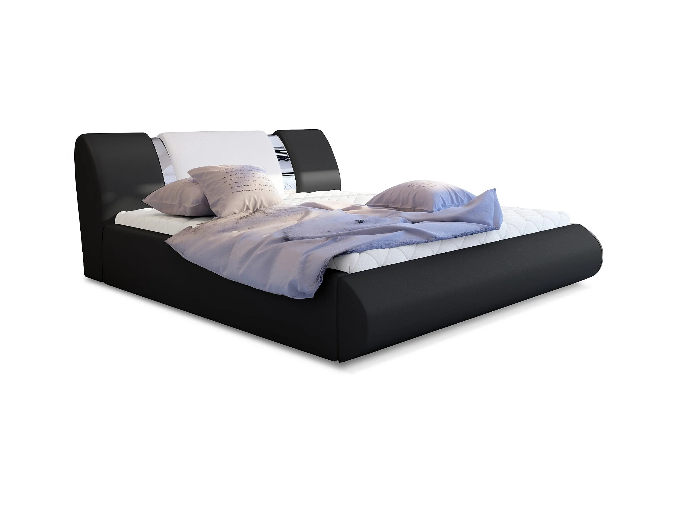 Lit coffre 180x200 simili noir-blanc et métal chromé Flavien