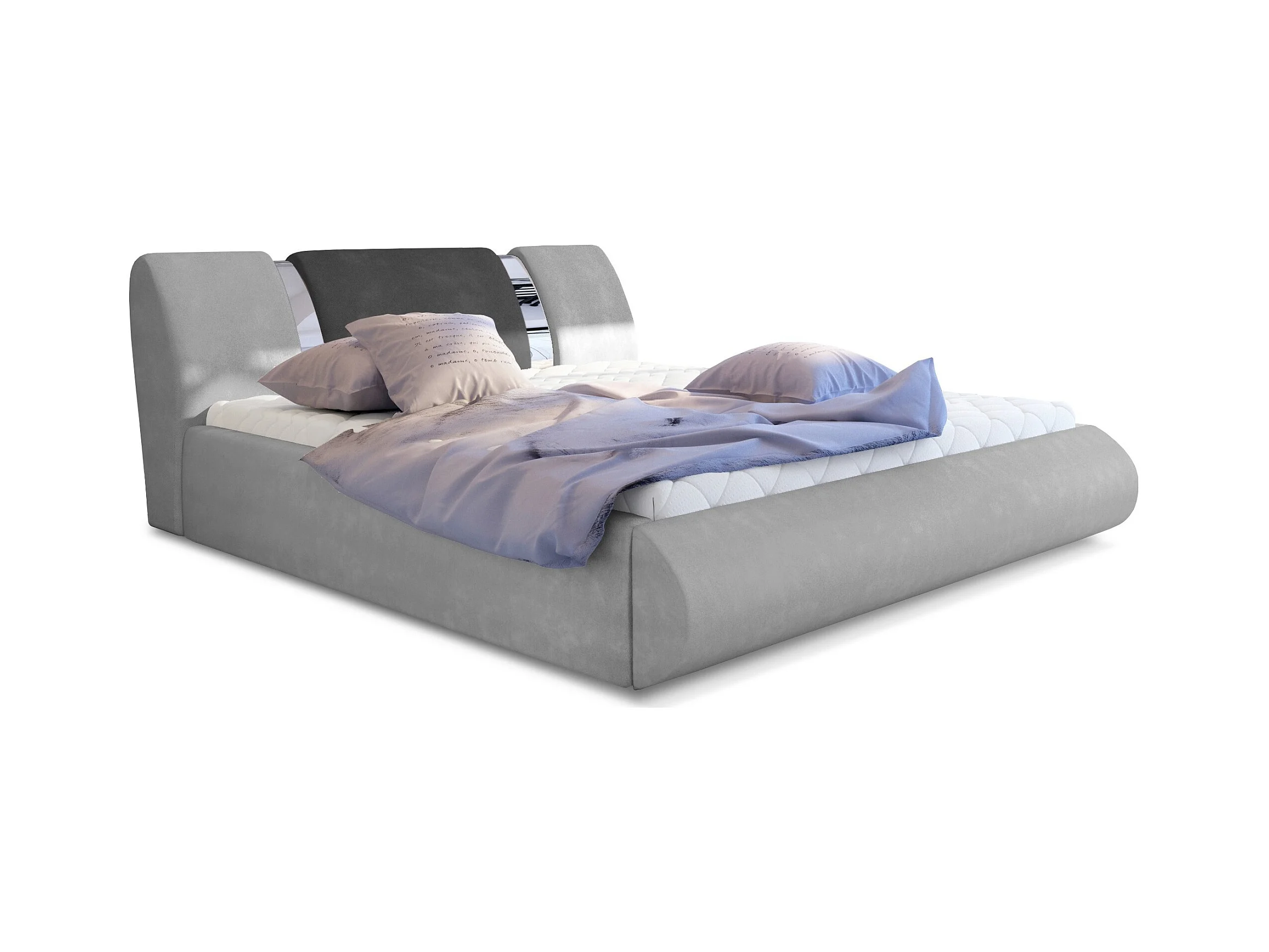 Lit double rembourré en tissu Clarin-Couleur Gris-180x200-Version avec sommier
