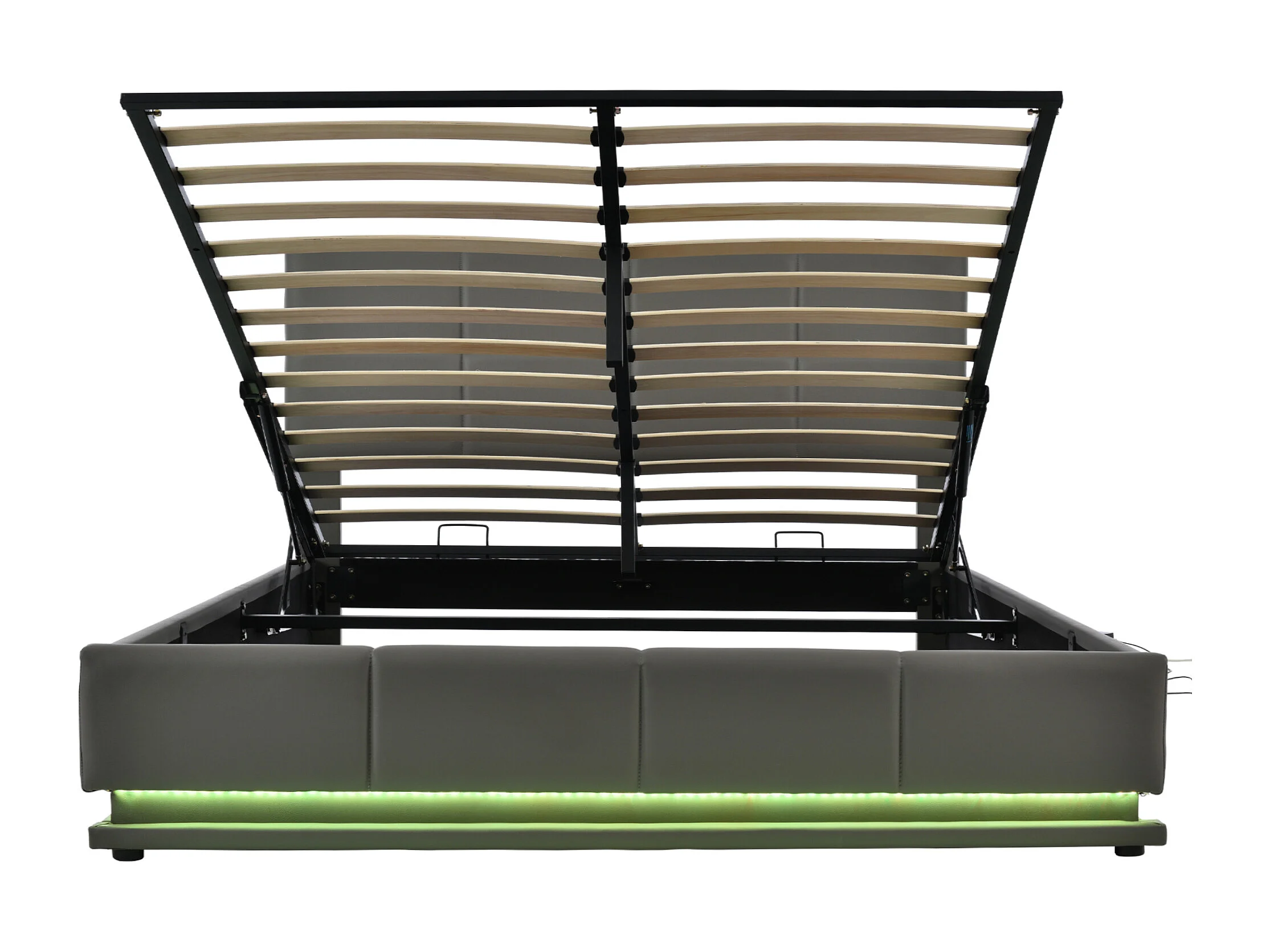 Lit coffre hydraulique avec tête de lit + Leds et ports USB/Type-C - 180 x 200 cm - lin - gris