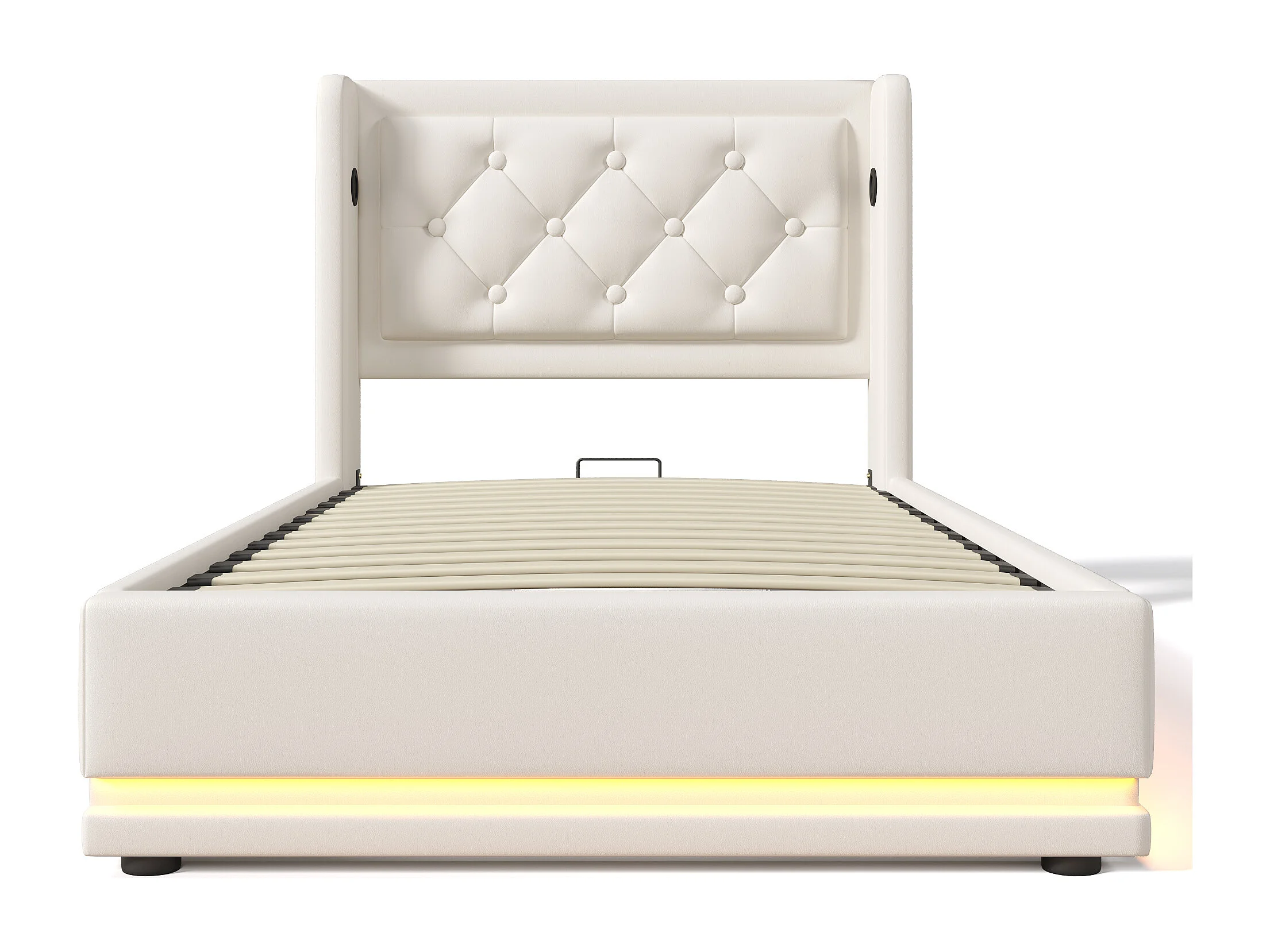 Lit coffre 90x200 cm avec LED 3 côtés, ports USB et USB Type C, PU blanc (Sans matelas)