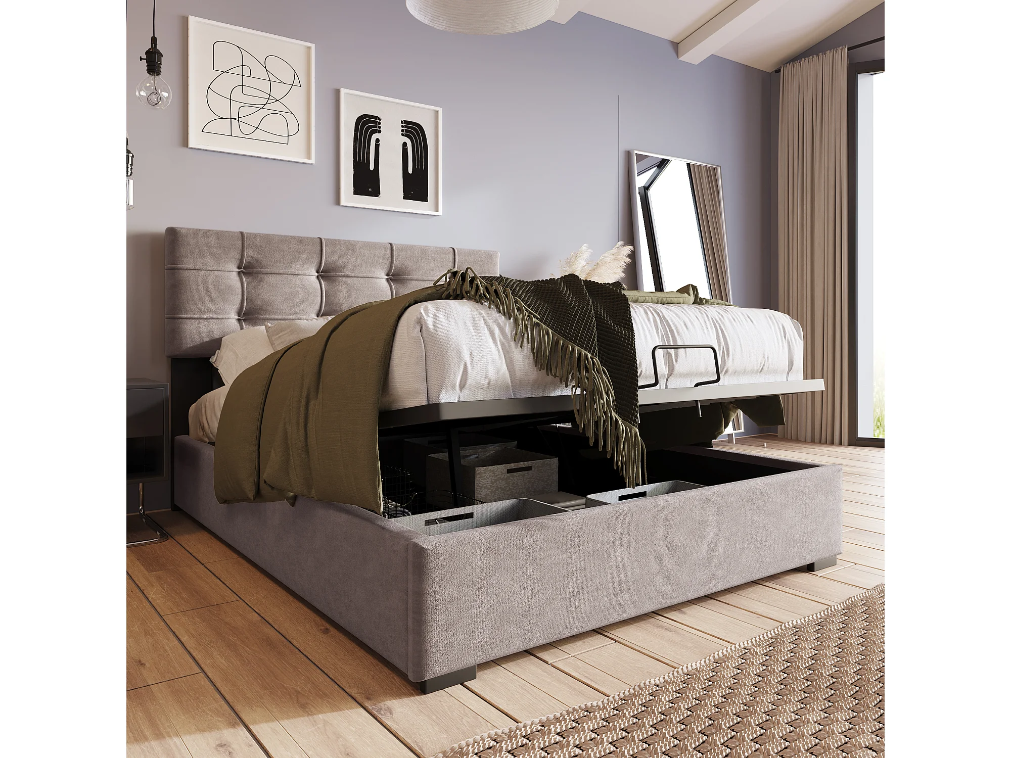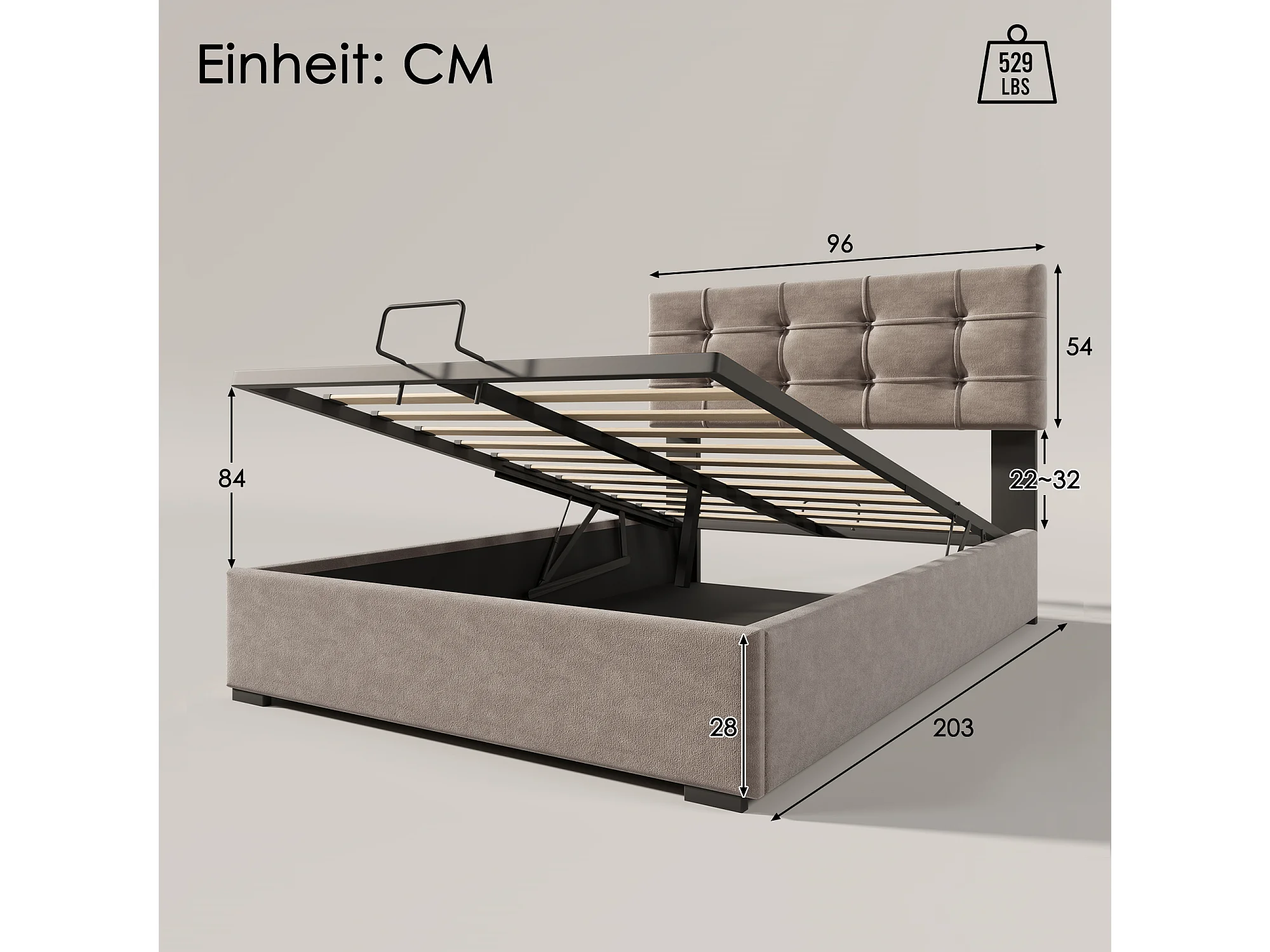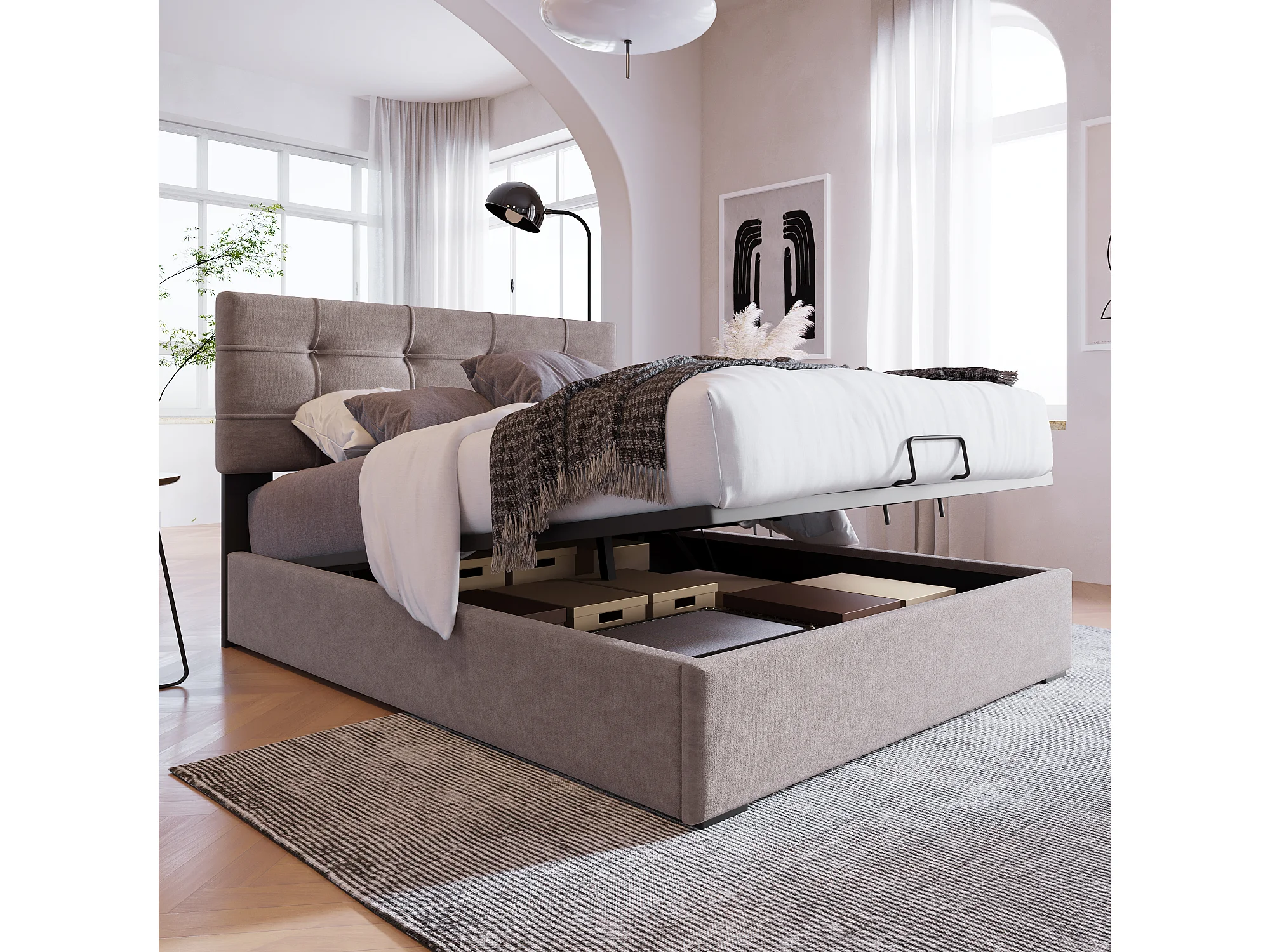 Lit coffre 90x200cm avec tête de lit réglable cadre espace de rangement - Gris - (Avec matelas)