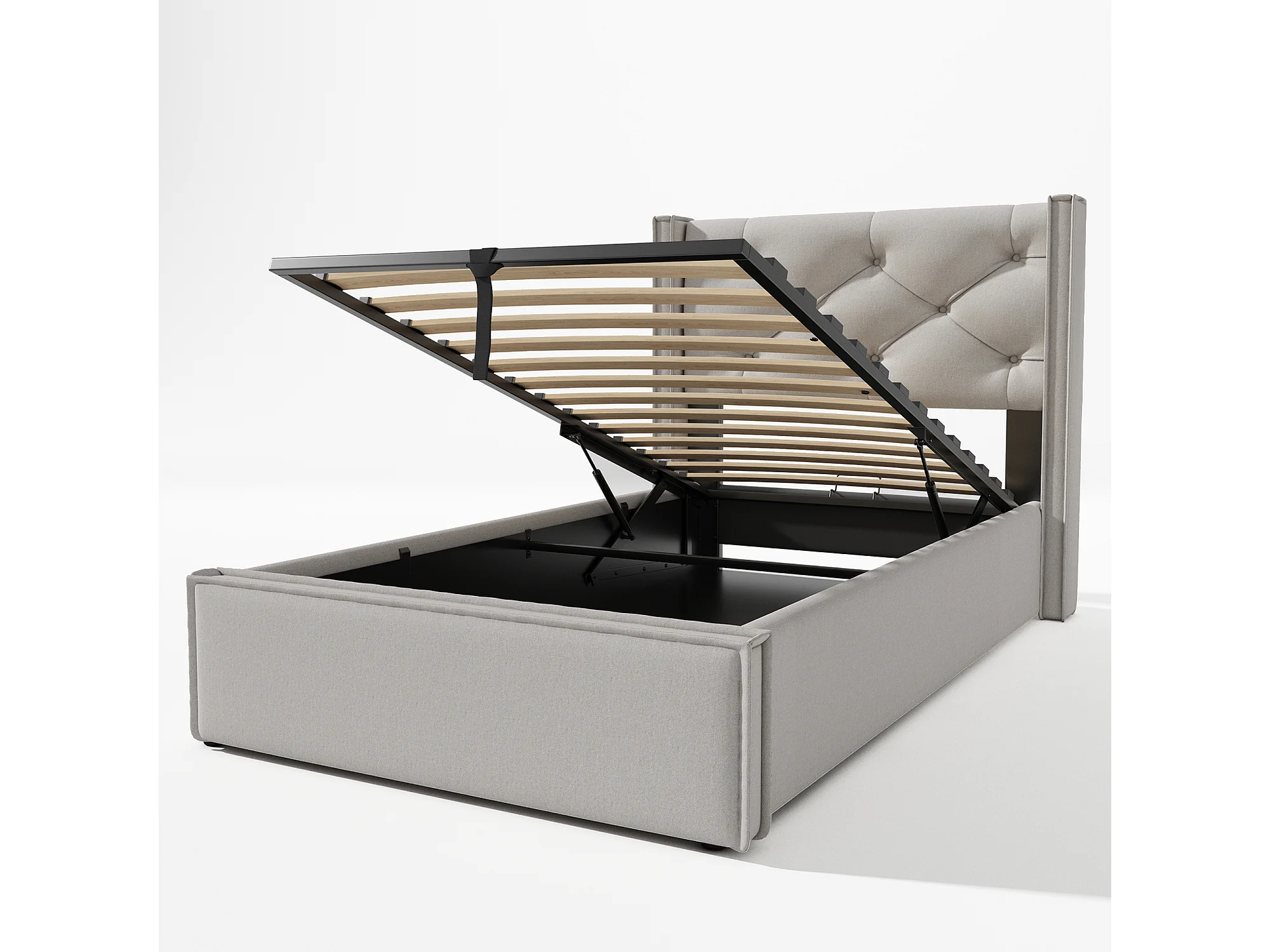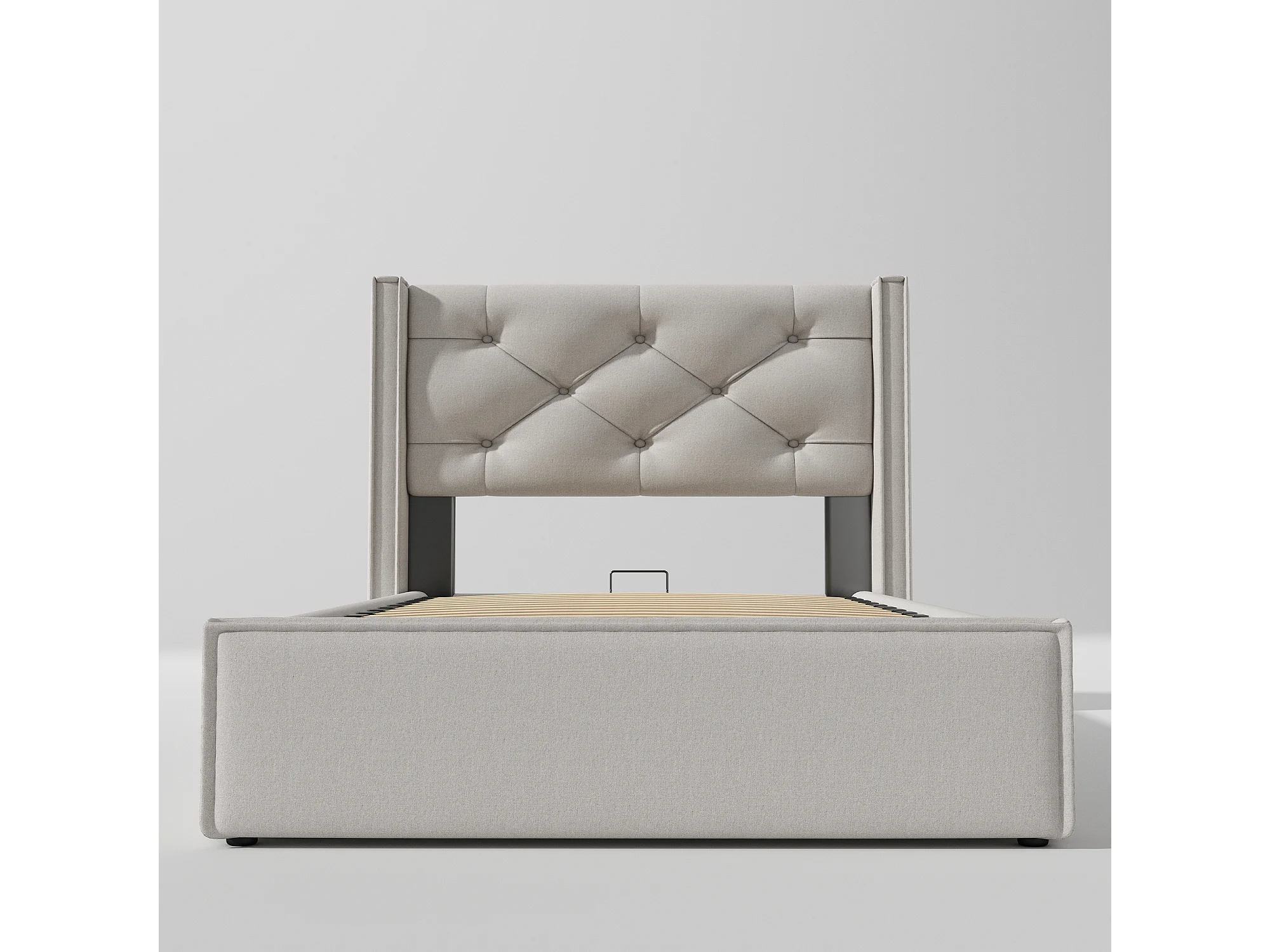 Lit coffre 90x200cm en cotton avec espace de rangement, gris clair, Sommier à lattes, sans matelas