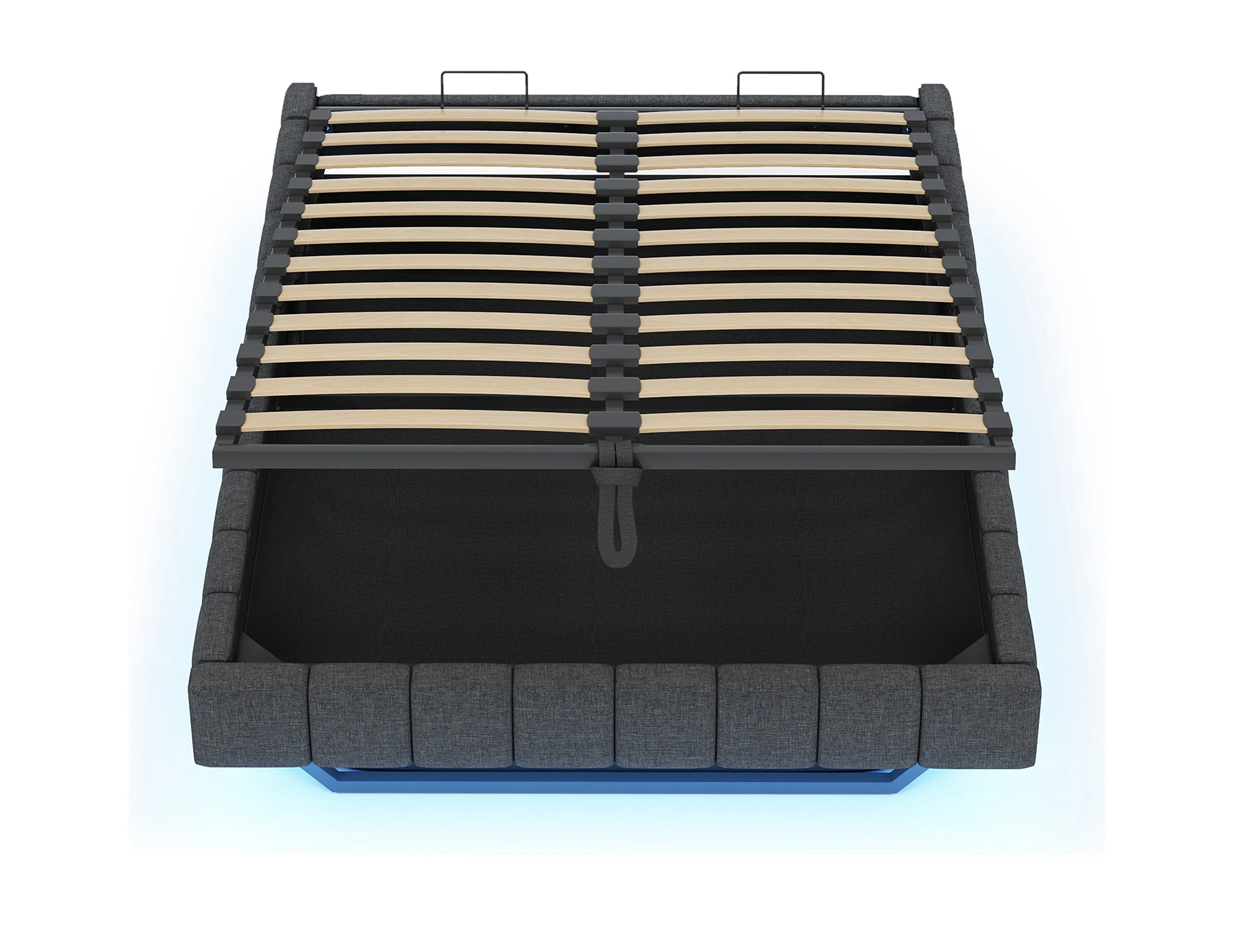 Lit coffre 160x200 cm cadre moderne effet flottant gain de place tissu pour chambre gris (Sans matelas)