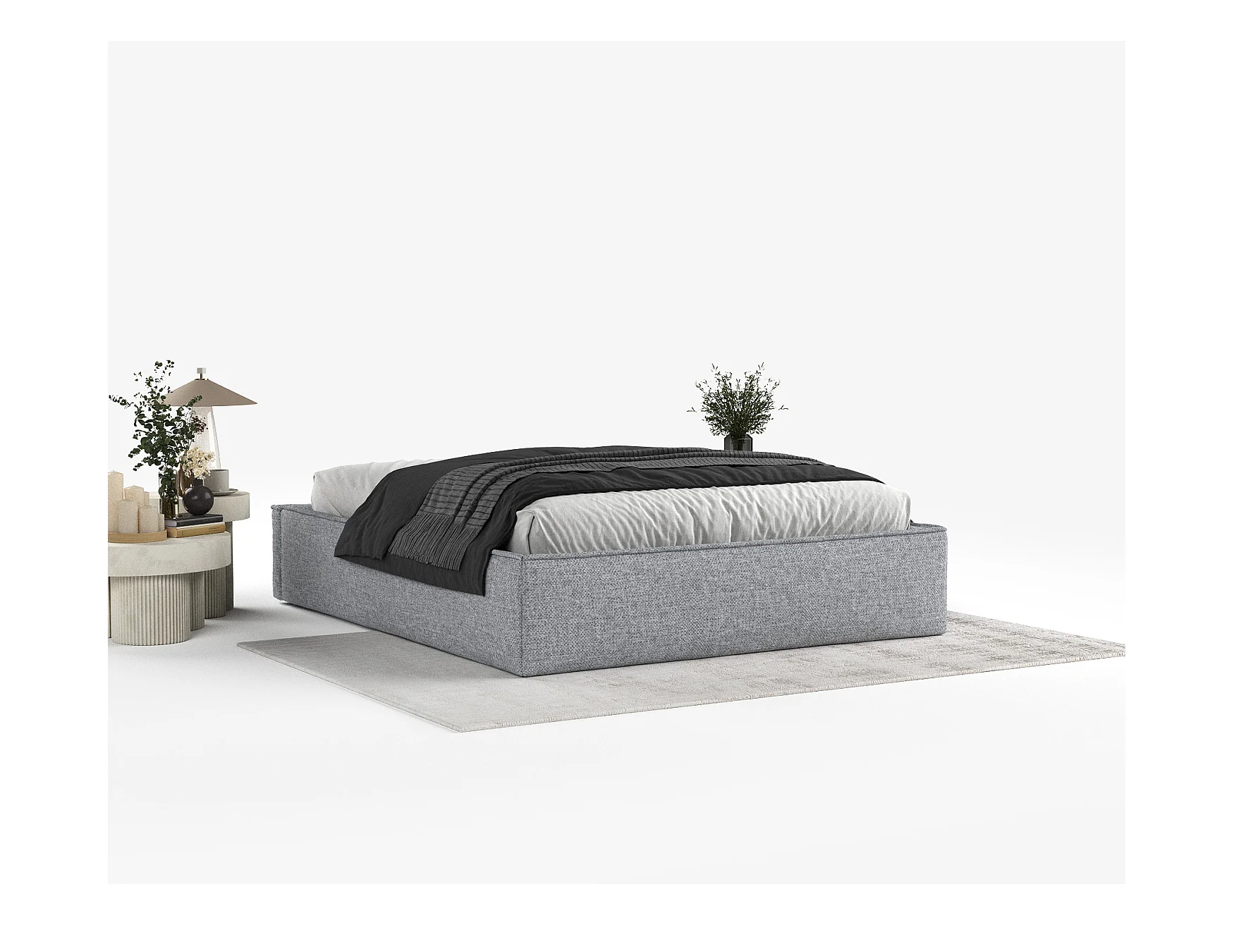 Lit coffre Alvar - 120 x 200 cm - chenille - gris