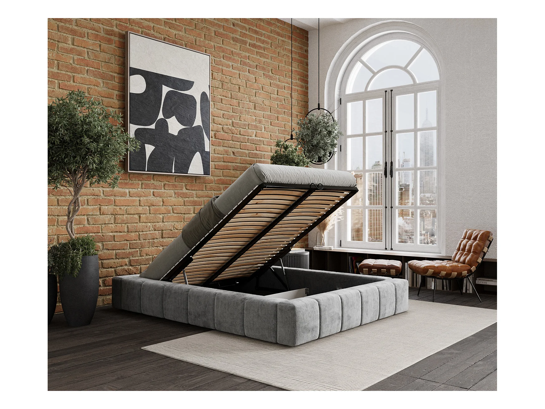 Lit coffre Aruba - 160 x 200 cm - chenille - gris clair