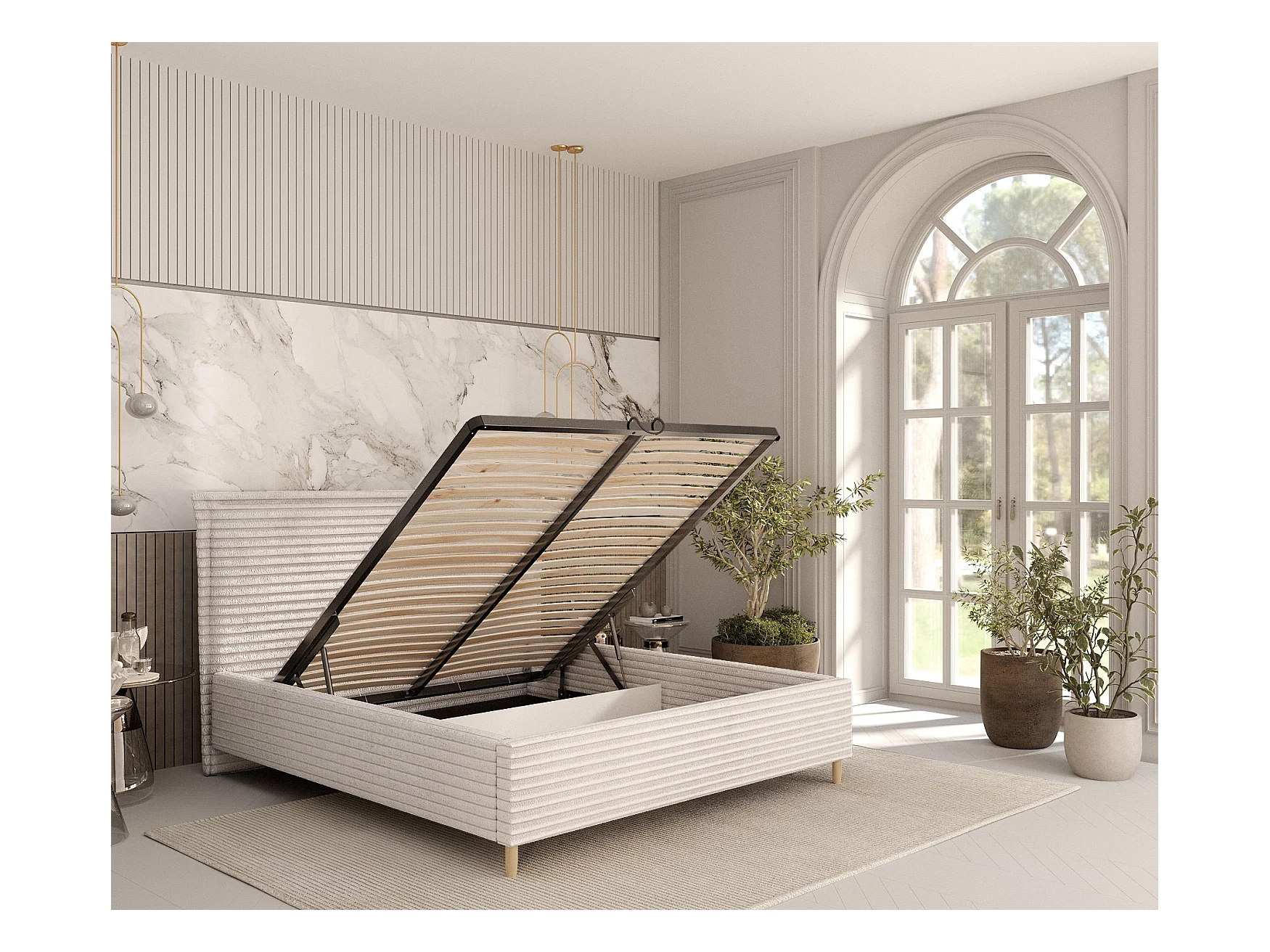 Lit coffre Mija - 180 x 200 cm - chenille - beige