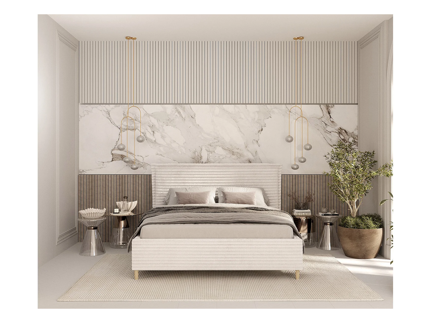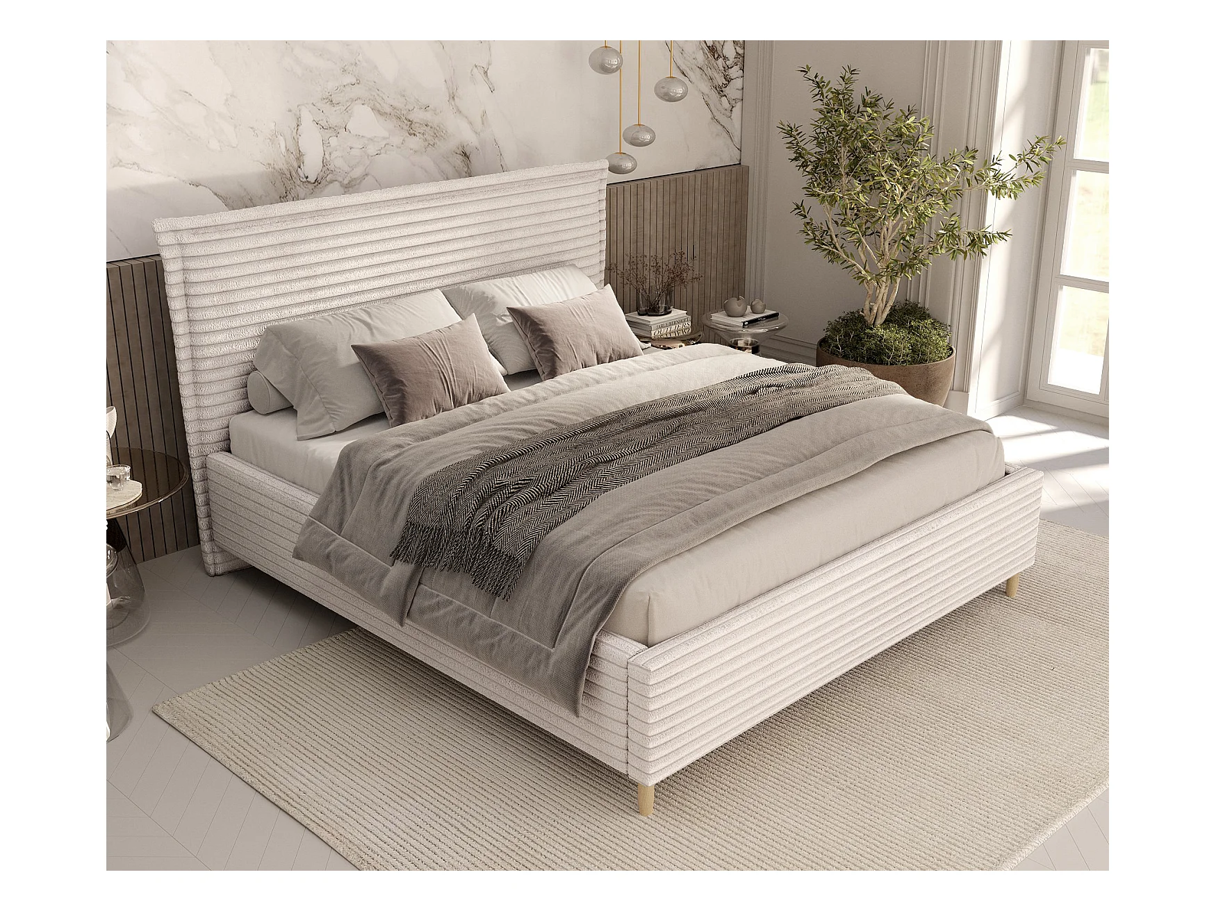 Lit capitonné Shell - 180 x 200 cm - velours - beige clair