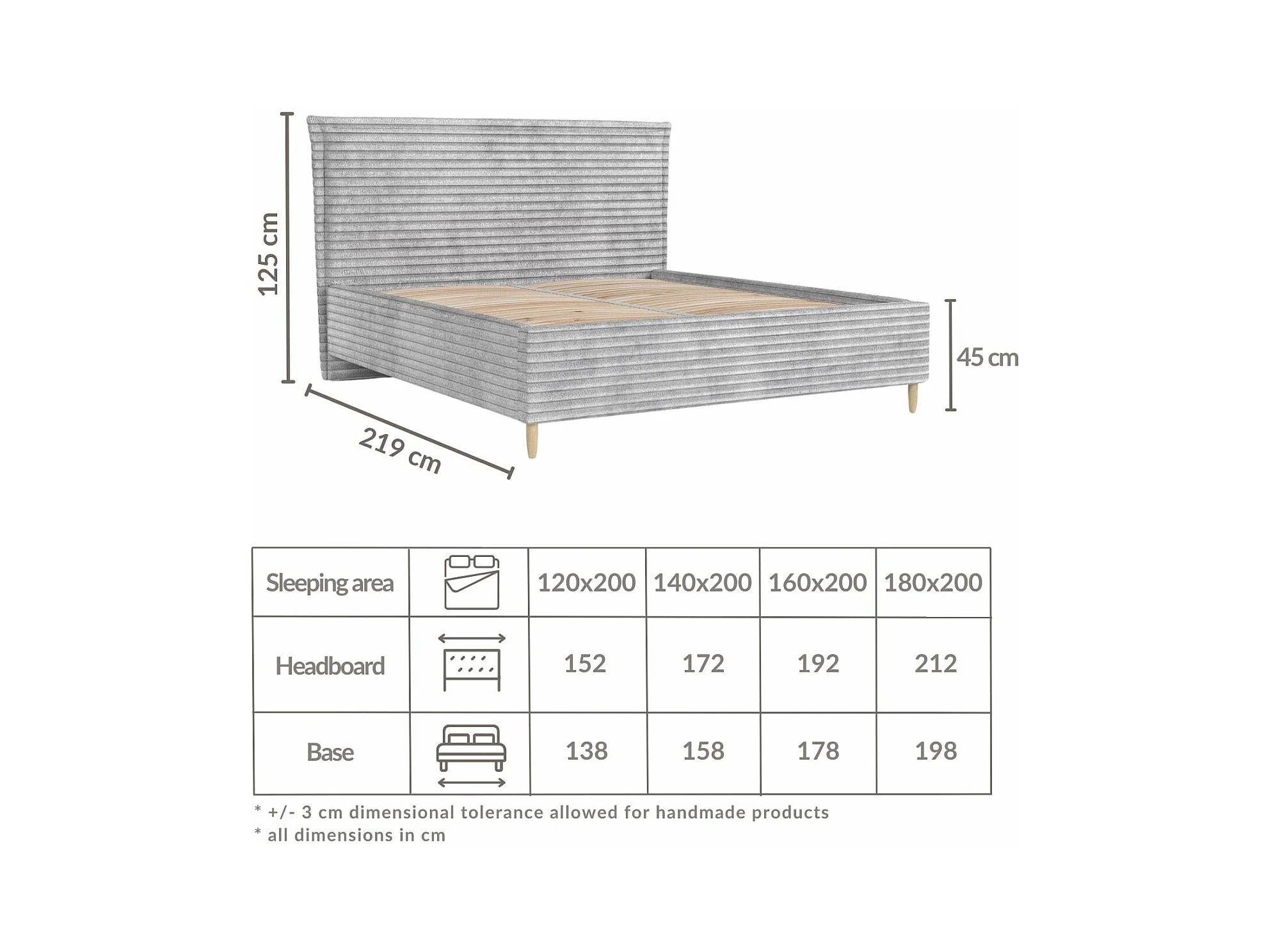 Lit capitonné Shell - 180 x 200 cm - toile tissée - beige