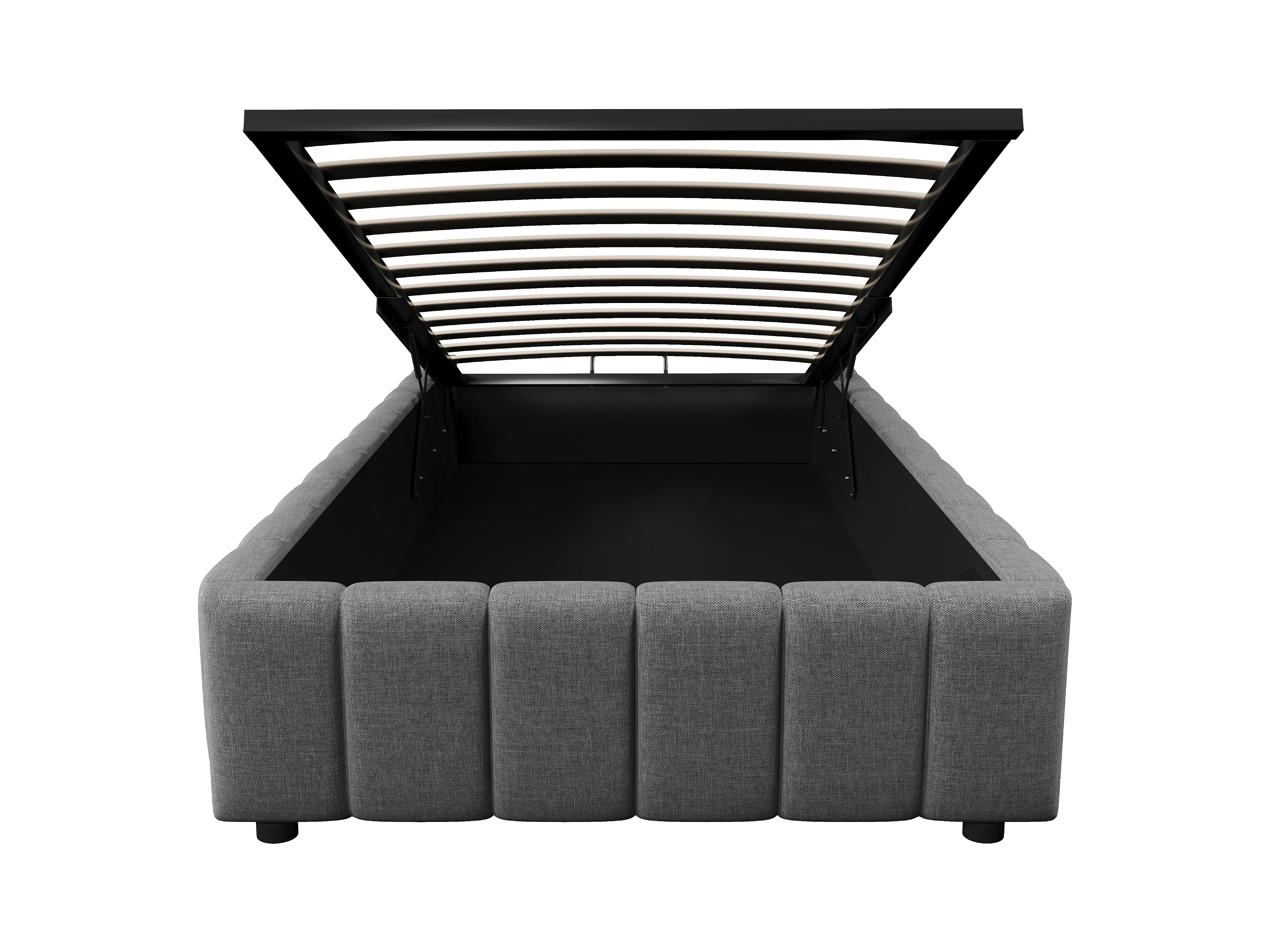 Lit coffre capitonné en lin - 90x200 cm - sans tête de lit - Gris