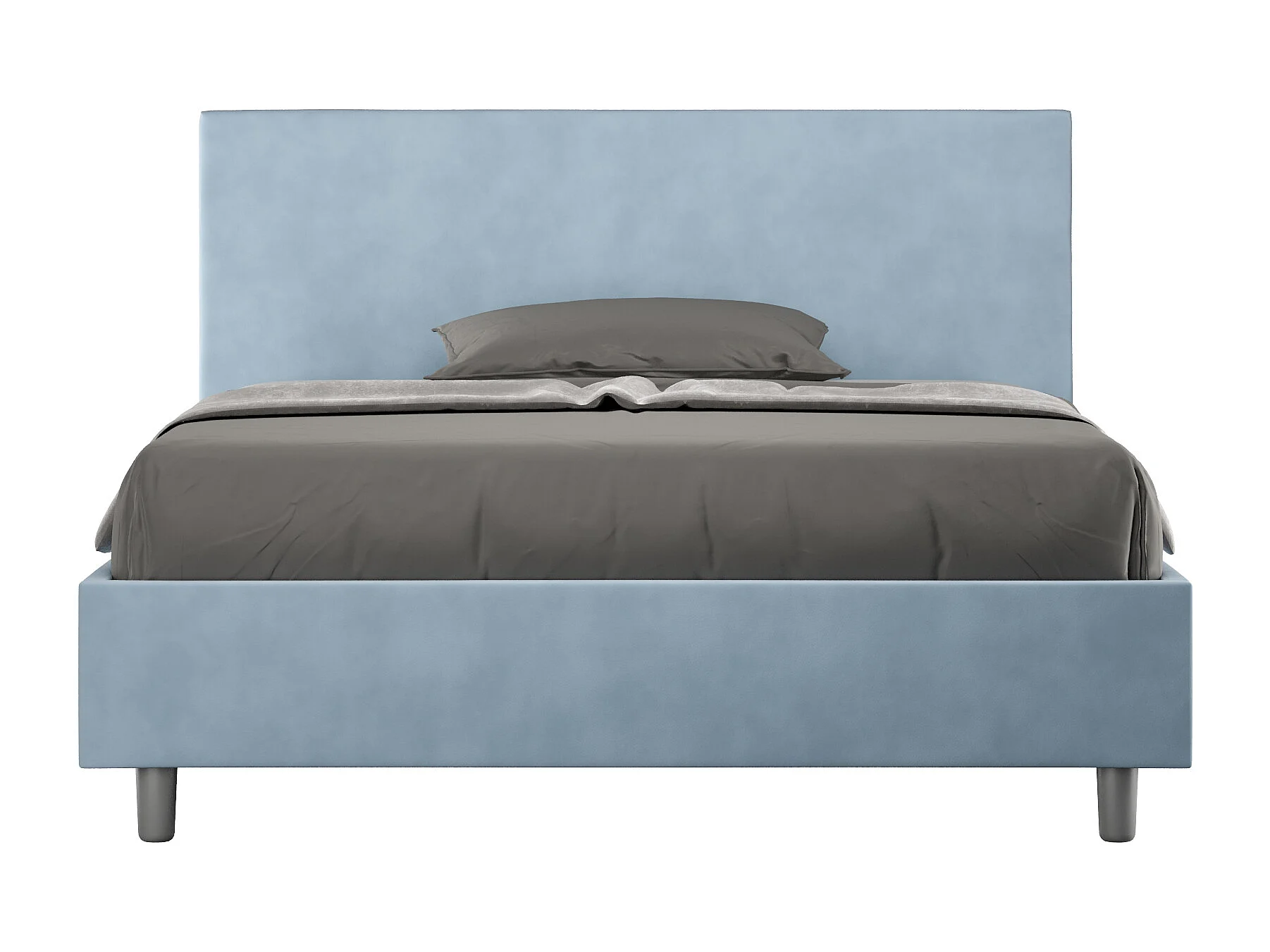 Lit double coffre rembourré 140x200 microfibre bleu clair Antea