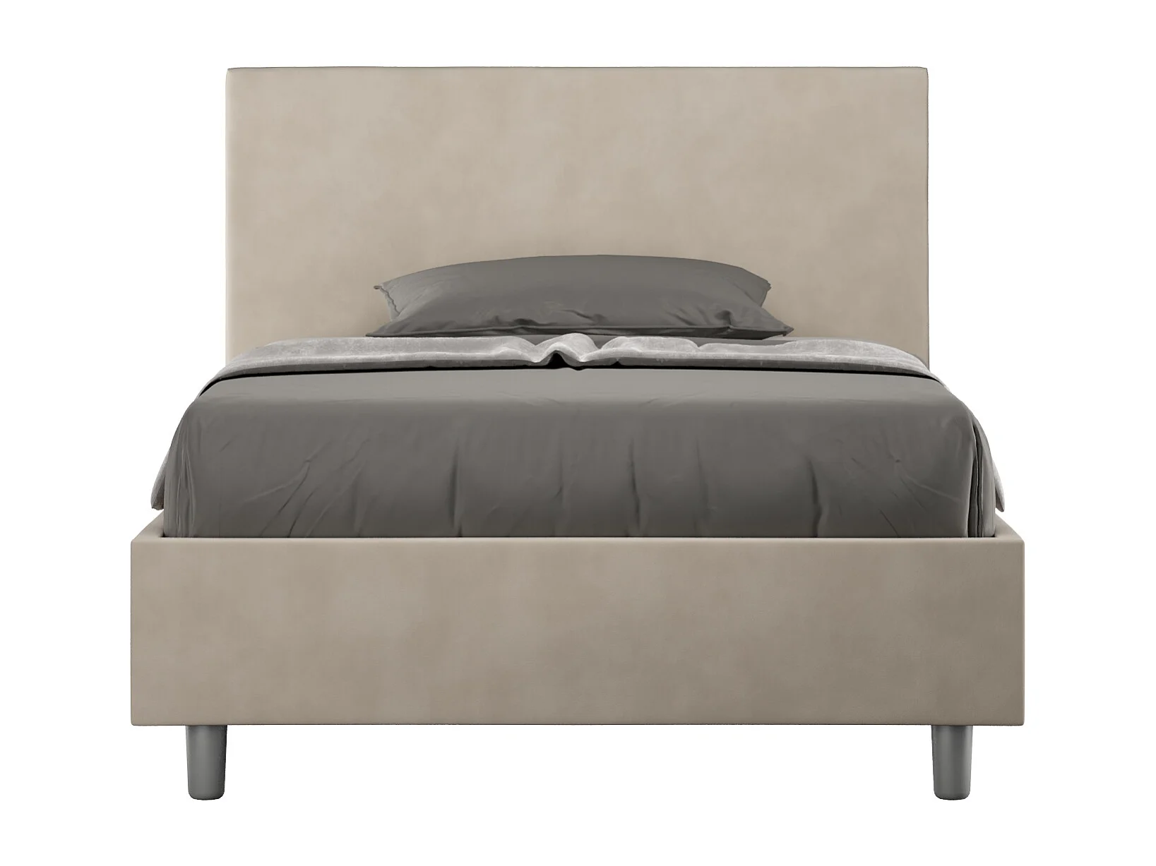 Lit 1 place et demi coffre rembourré 120x200 microfibre sable Adele