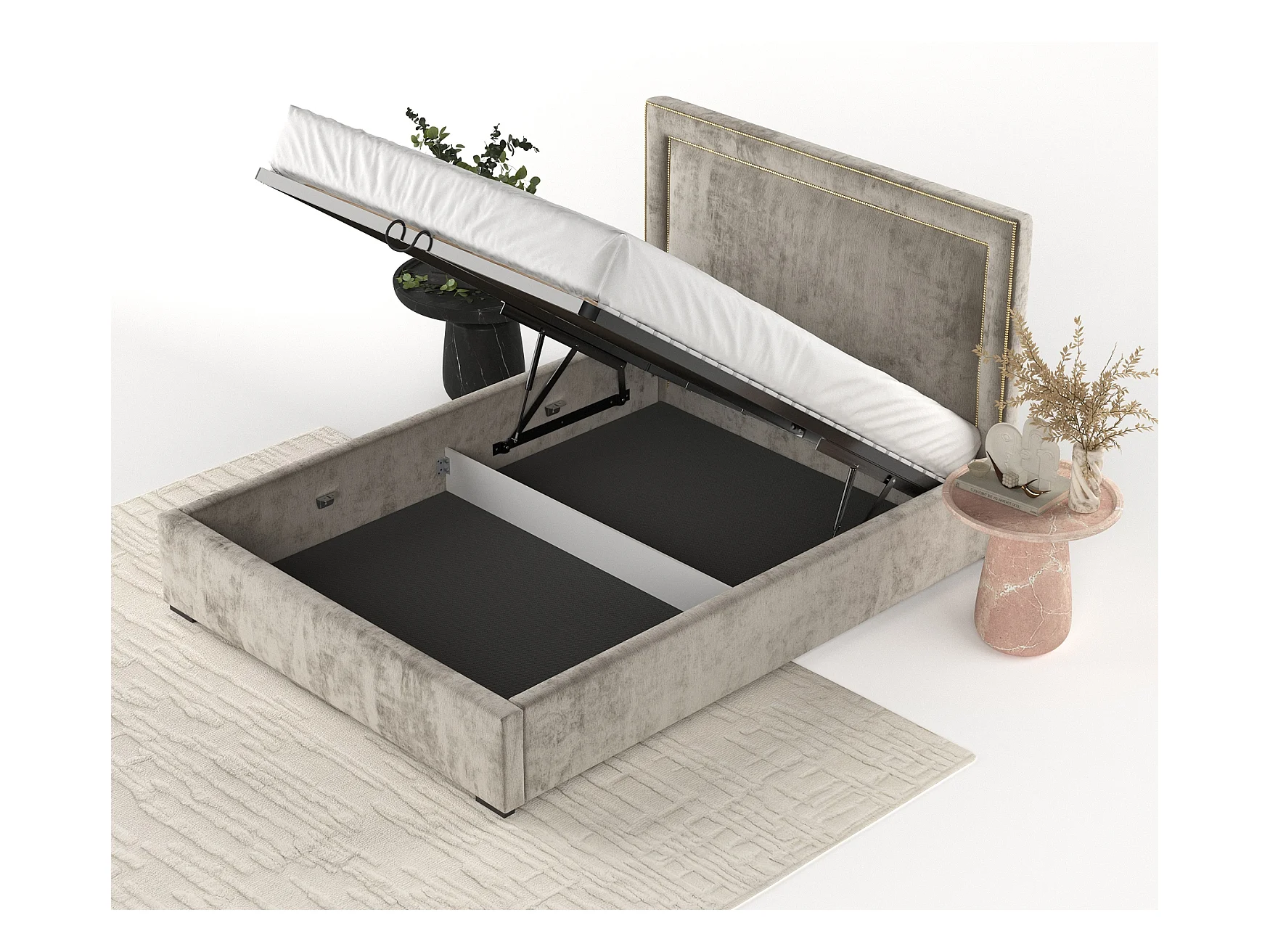 Lit coffre en tissu beige