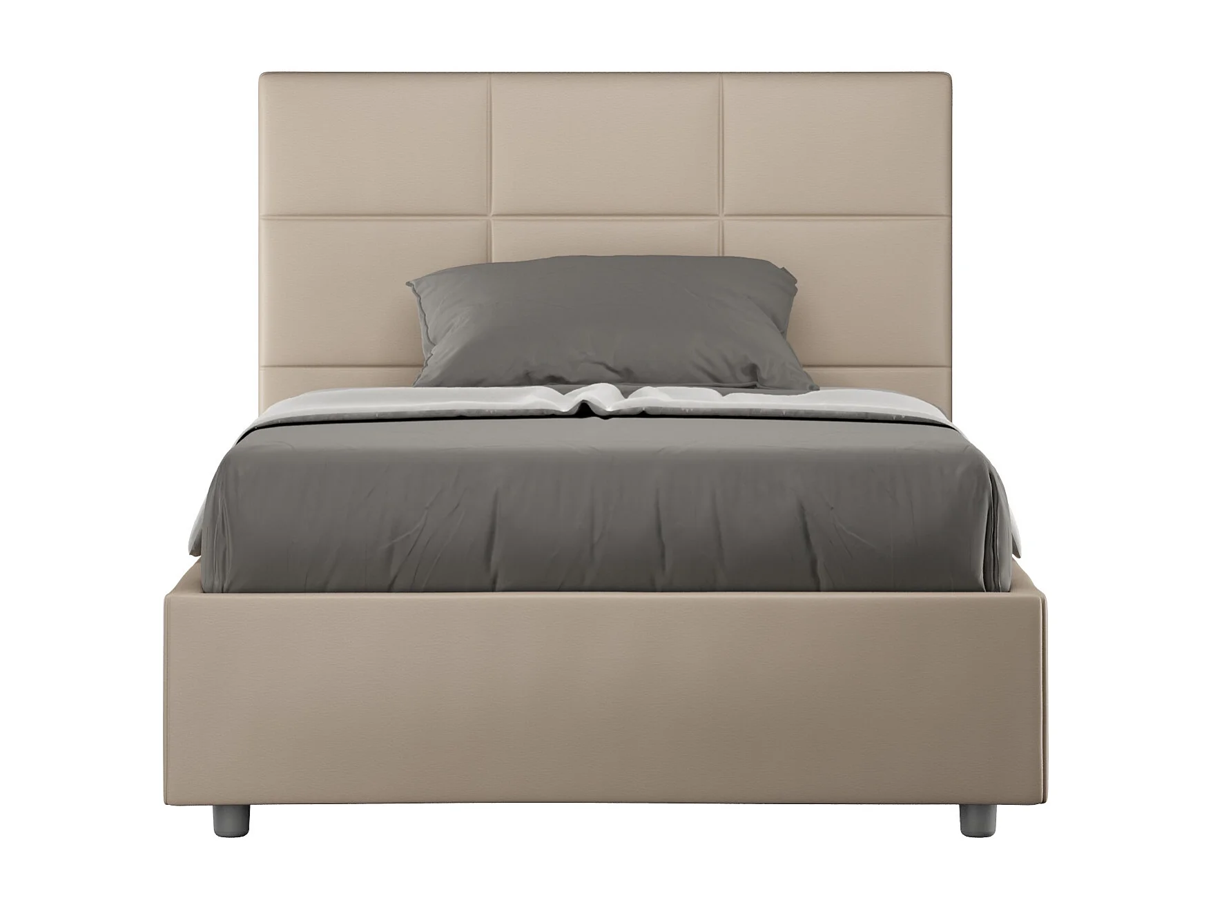 Lit double coffre rembourré 140x190 similicuir taupe Mika