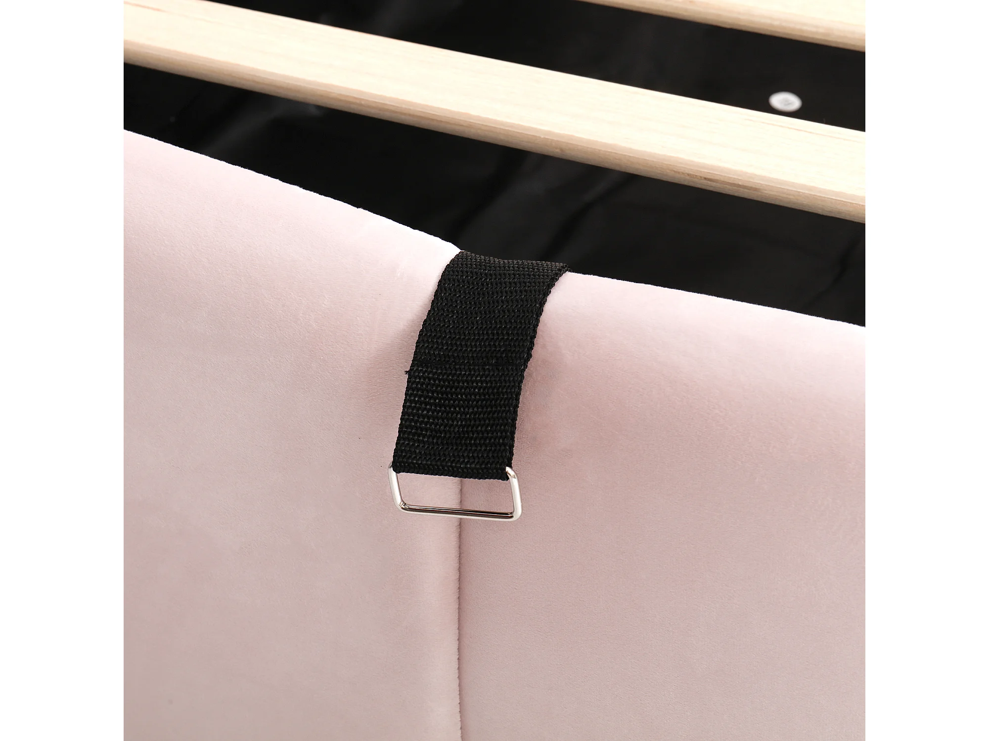 Lit coffre enfant 90x200 cm, tissu en fond, chargeur USB, sac de rangement, velours rose, sans matelas