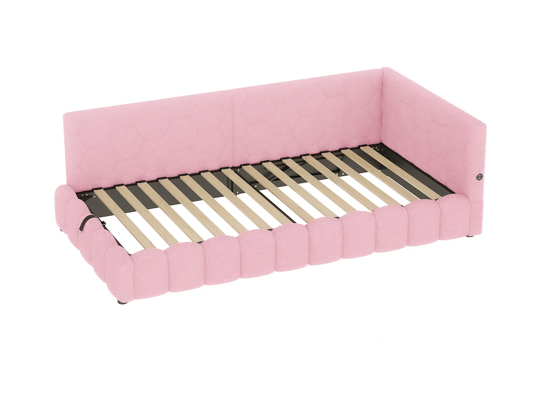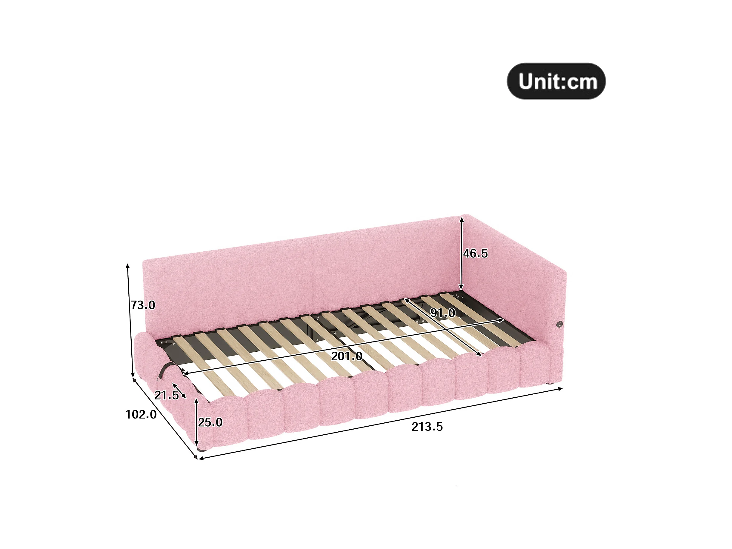 lit coffre enfant 90x200cm avec LED et USB Type-C,Canapé-lit en imitation laine rose, sans matelas