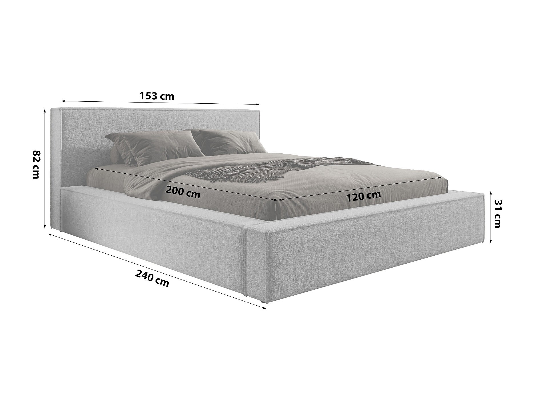 Mona SLIM III Lit rembourré pour votre chambre à coucher en tissu VELUTTO, 120x200 cm Gris
