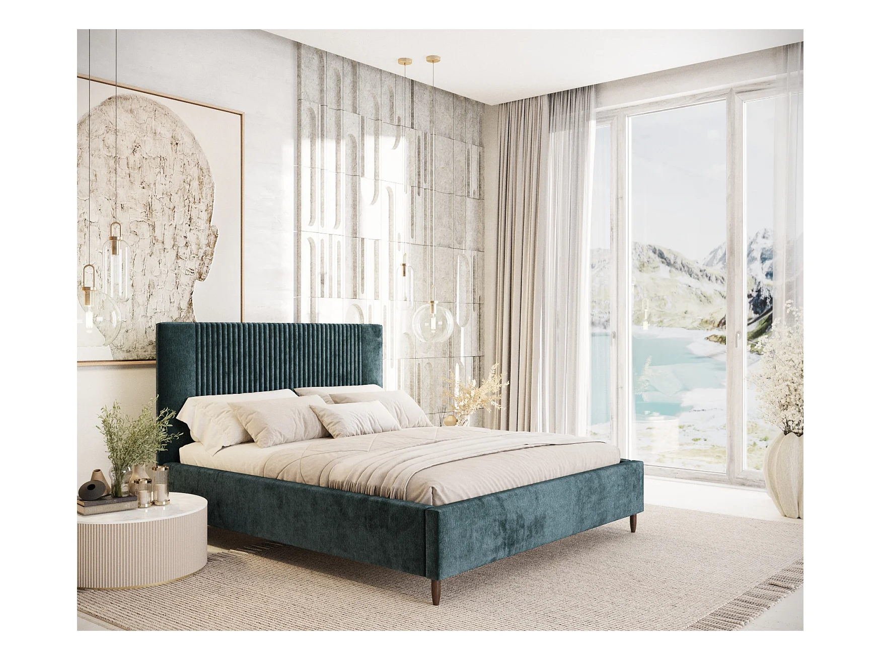 Lit coffre Etero - 180 x 200 cm - chenille - couleur sarcelle