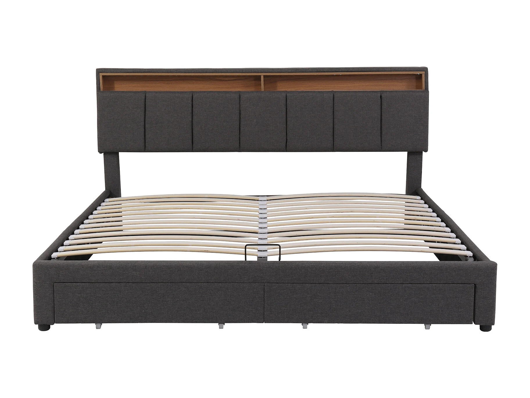 Lit Coffre Hydraulique 160x200 cm en Lin Gris avec LED Intégrées, Tête de Lit Rétractable, 2 Tiroirs et Compartiments de Rangement