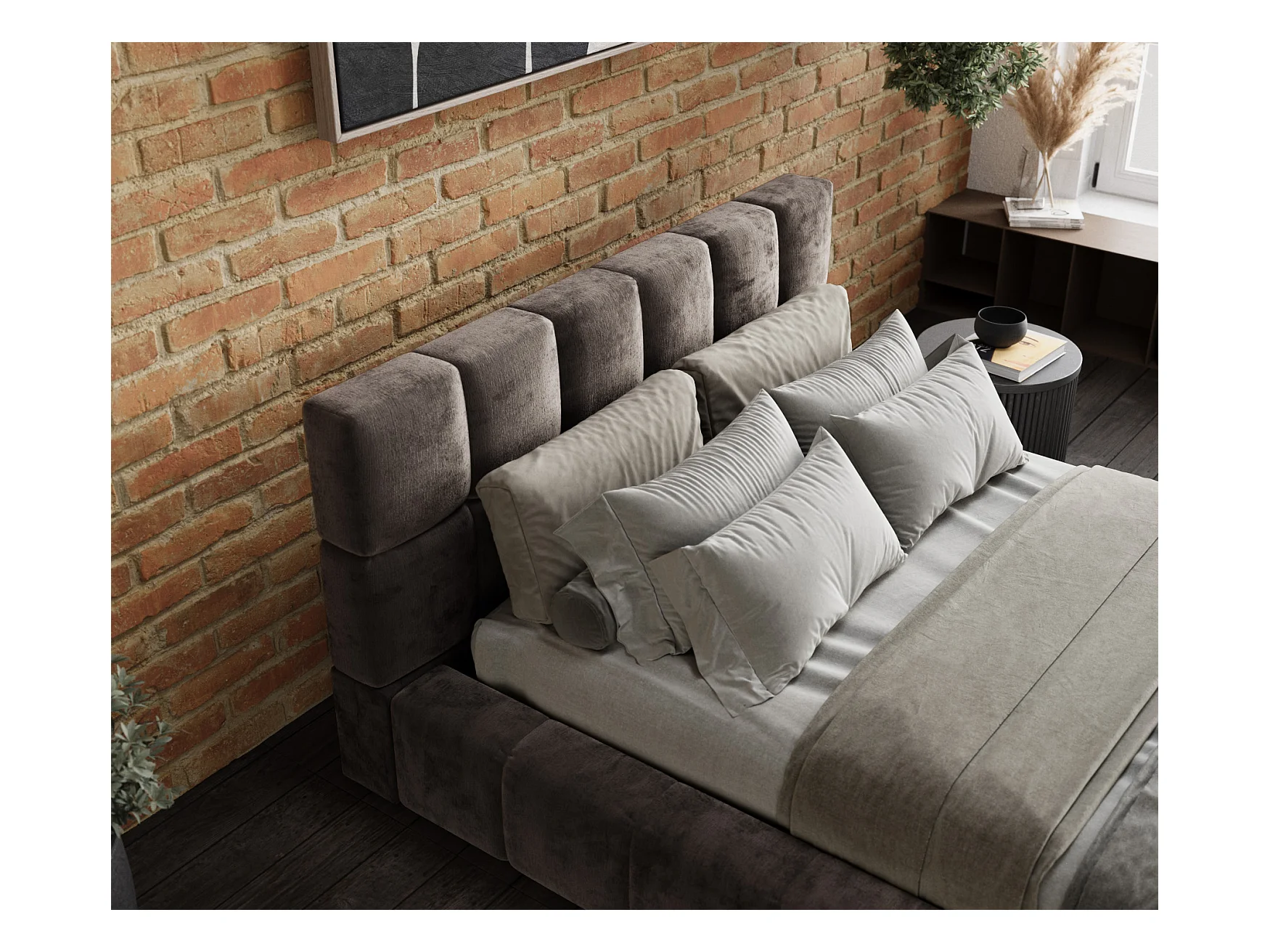 Lit coffre Kendal Dos - 200 x 200 cm - chenille - brun