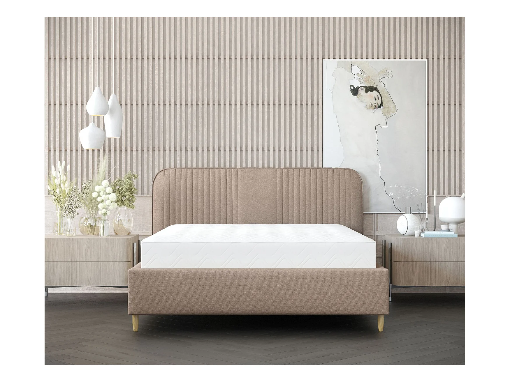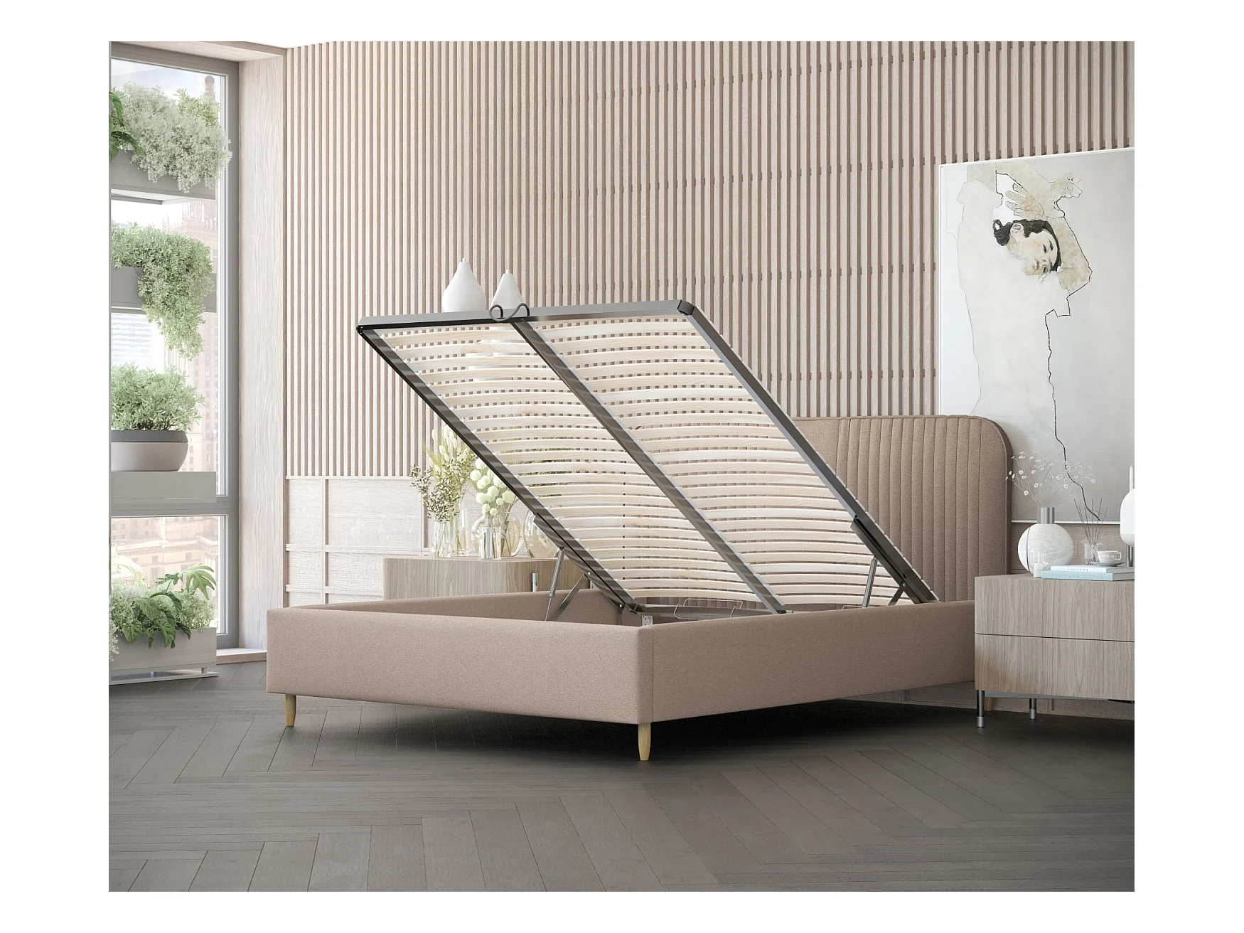 Lit coffre Livy - 120 x 200 cm - toile tissée - brun clair