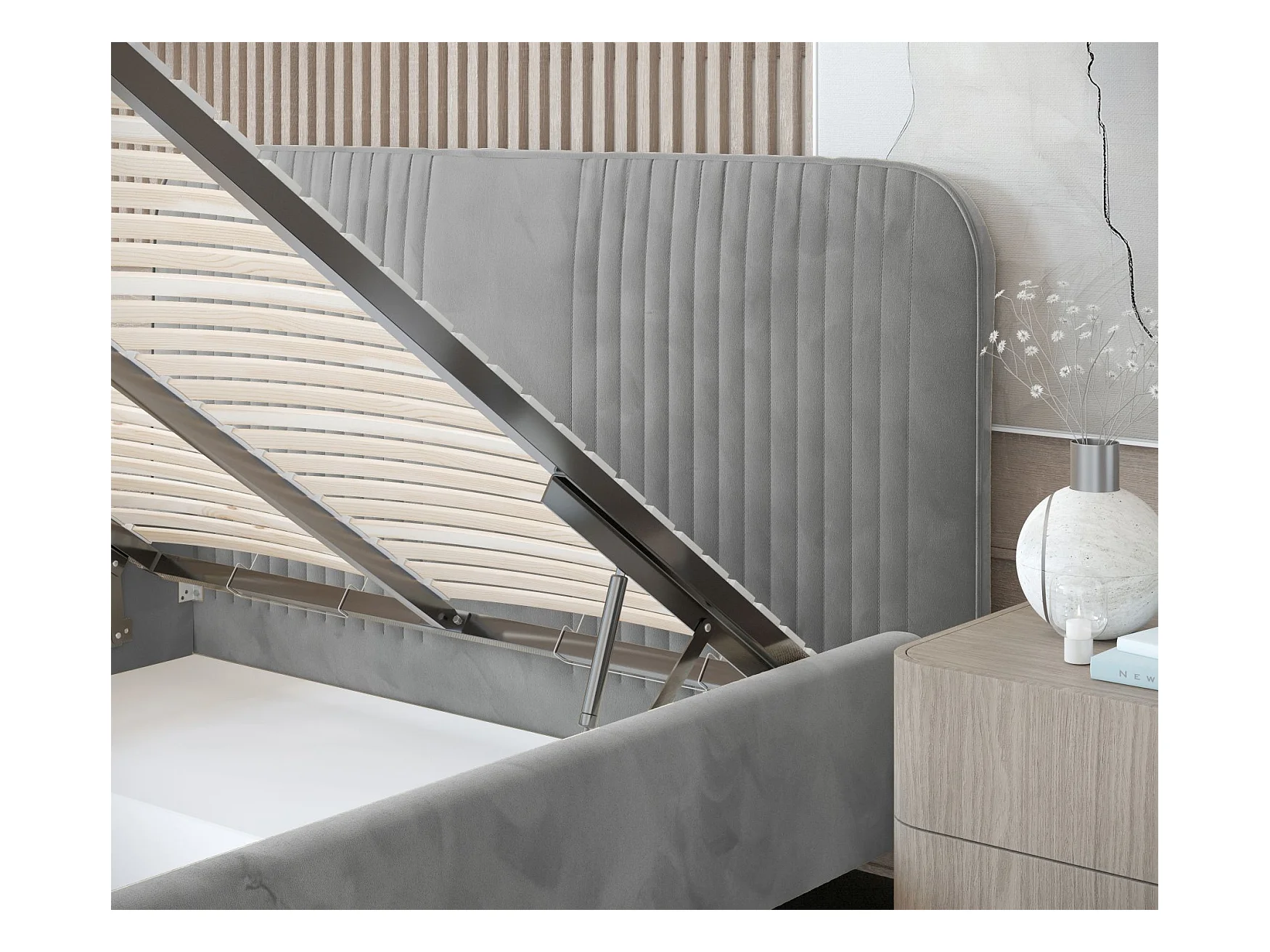Lit coffre Livy - 120 x 200 cm - velours - gris