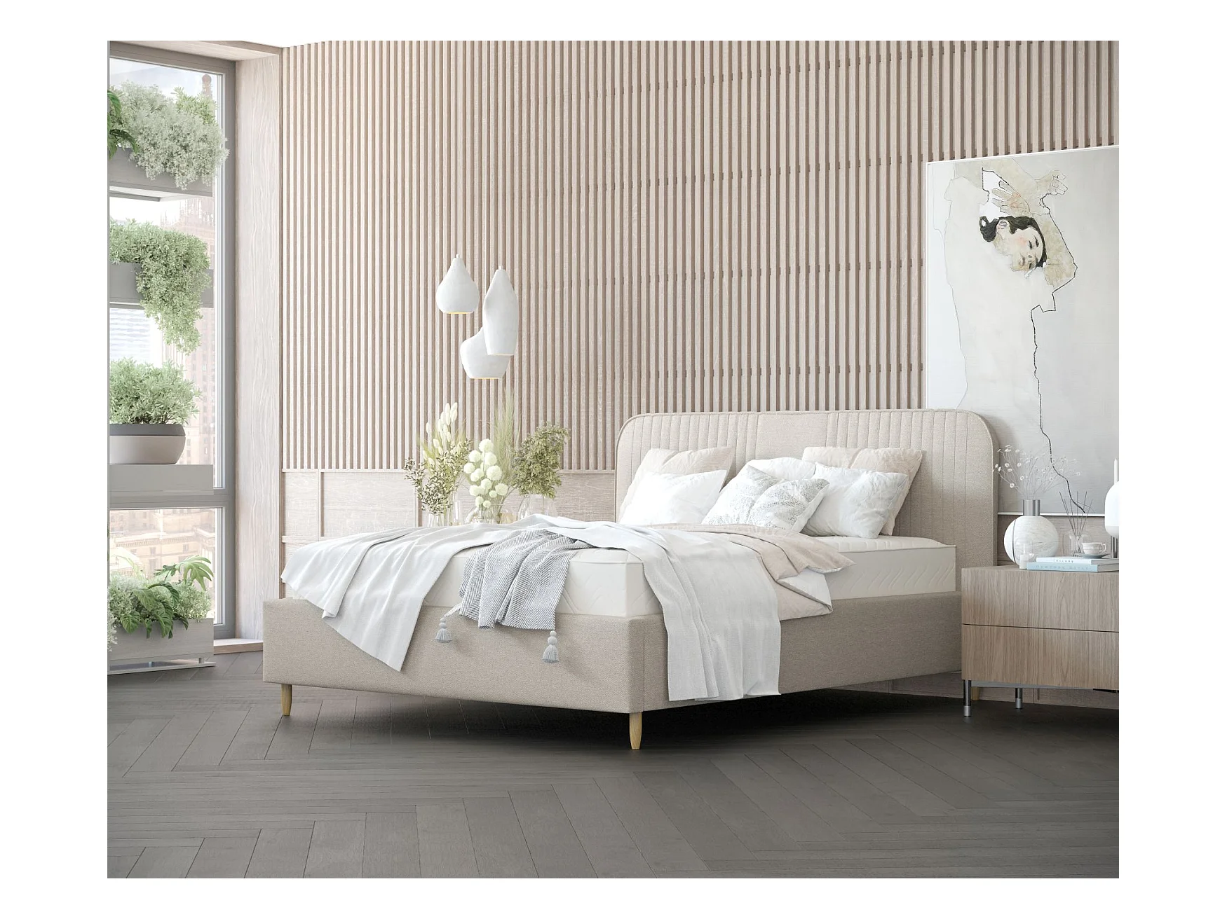 Lit coffre Livy - 140 x 200 cm - toile tissée - beige